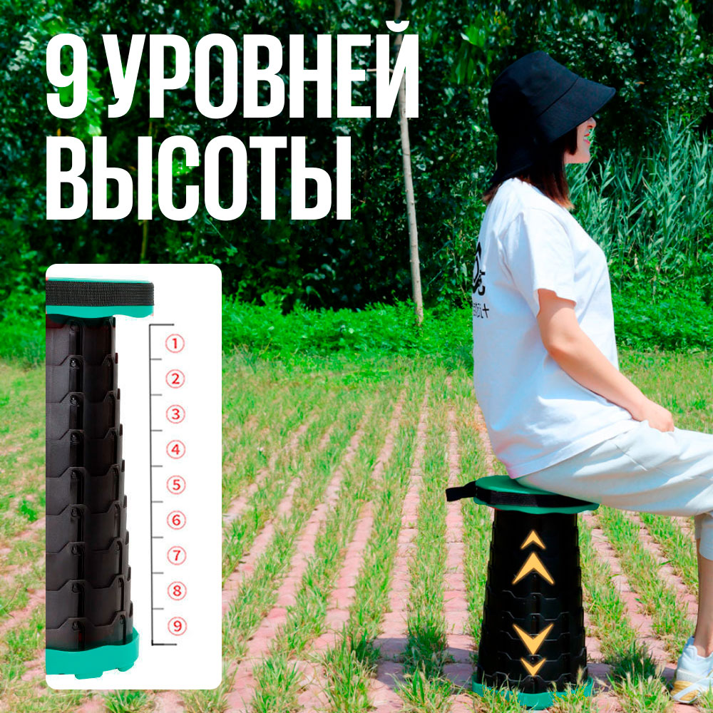 Табурет складной телескопический туристический для рыбалки черный