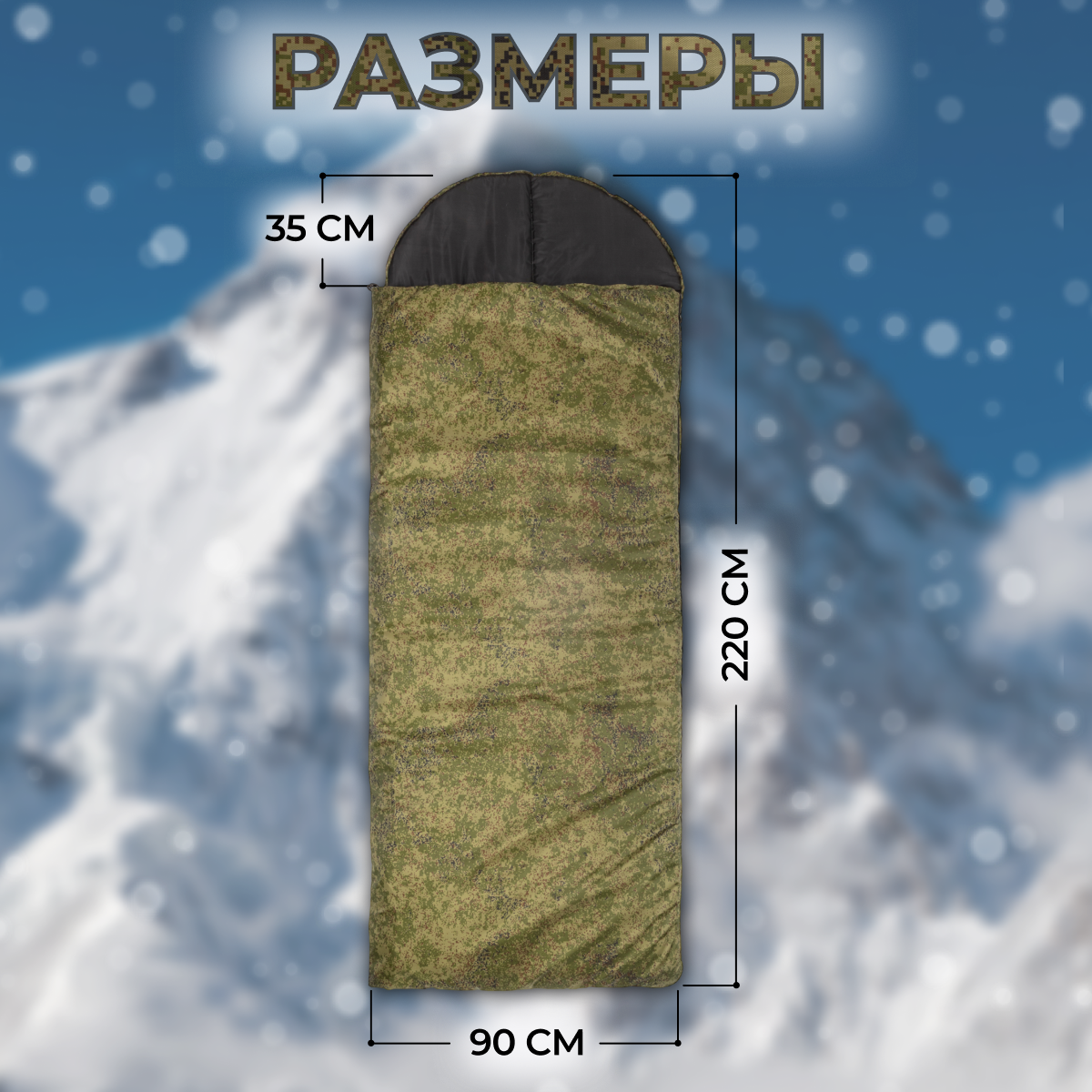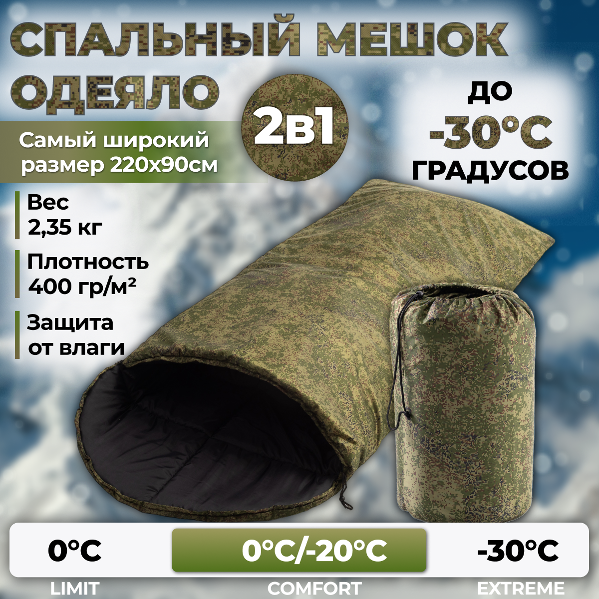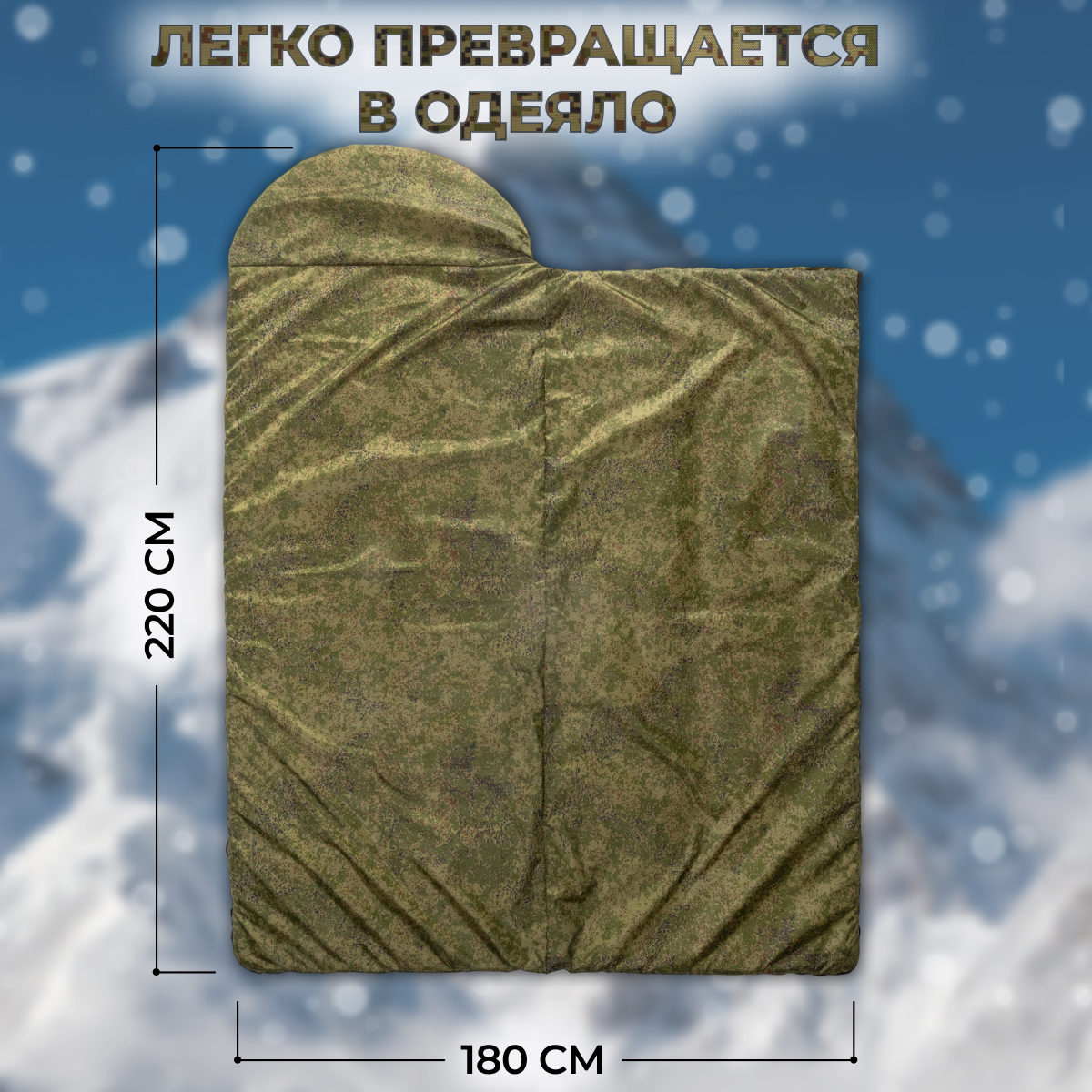 Спальный мешок-одеяло зимний камуфляж зеленый 90x220 см 0 °С/- 30°С интересное: