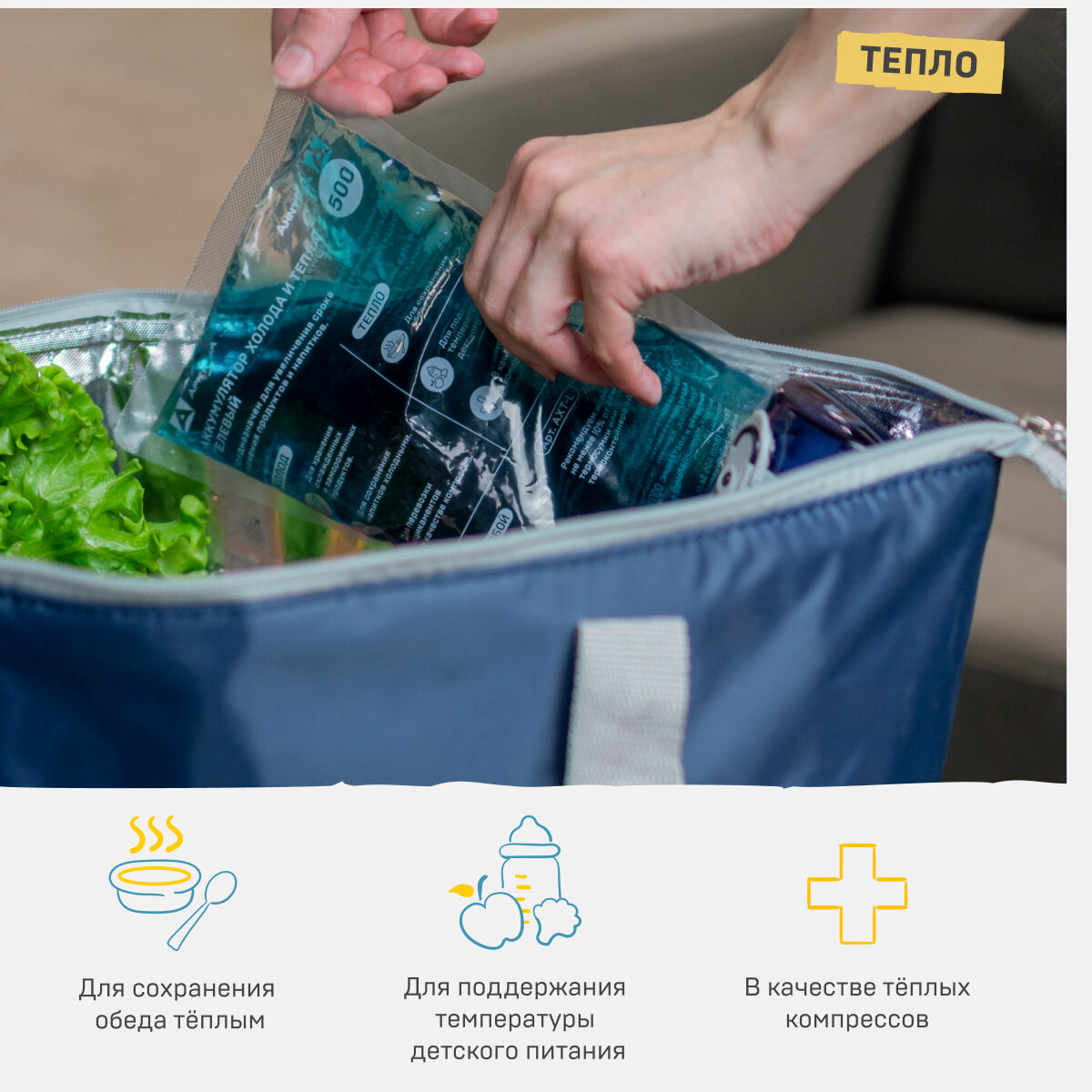 СохранитьГелевый аккумулятор температуры тепла и холода для термосумки и термоконтейнера Арктика АХТ-500, хладоэлемент 500 мл. интересное: