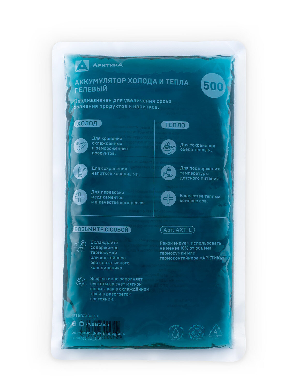 Купить Гелевый аккумулятор температуры тепла и холода для термосумки и термоконтейнера Арктика АХТ-500, хладоэлемент 500 мл.