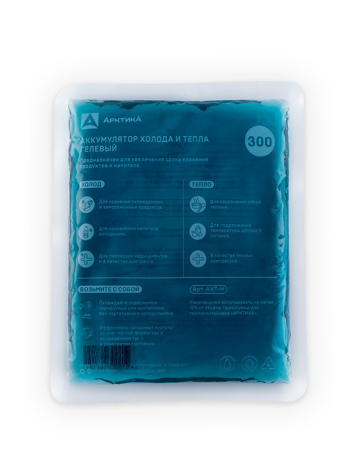 Купить Гелевый аккумулятор температуры тепла и холода для термосумки и термоконтейнера Арктика АХТ-300, хладоэлемент 300 мл.