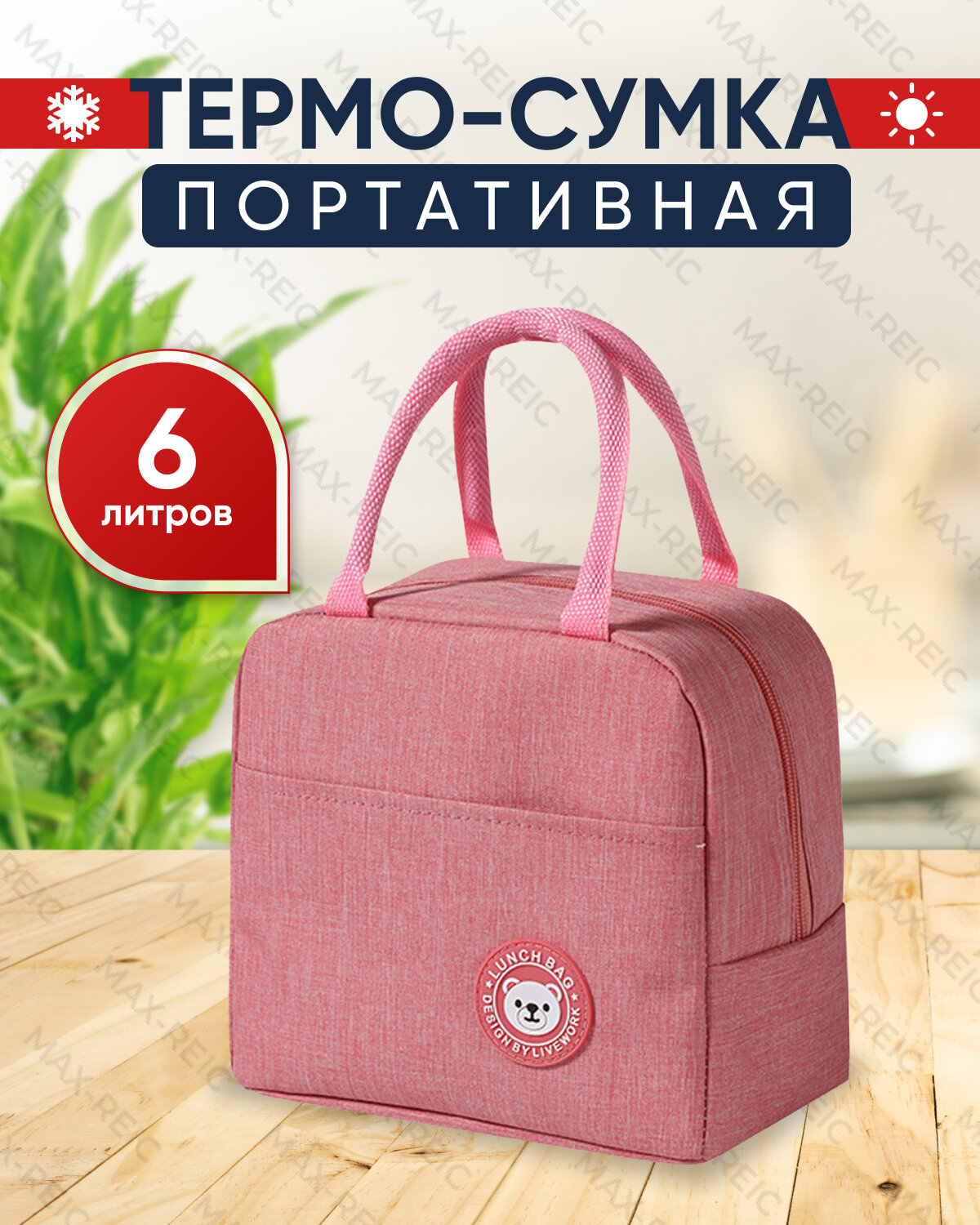 Купить Сумка холодильник R-MAX объемом 6 литров, крепкими водонепроницаемыми швами для сохранения продуктов в тепле или холоде, розовая