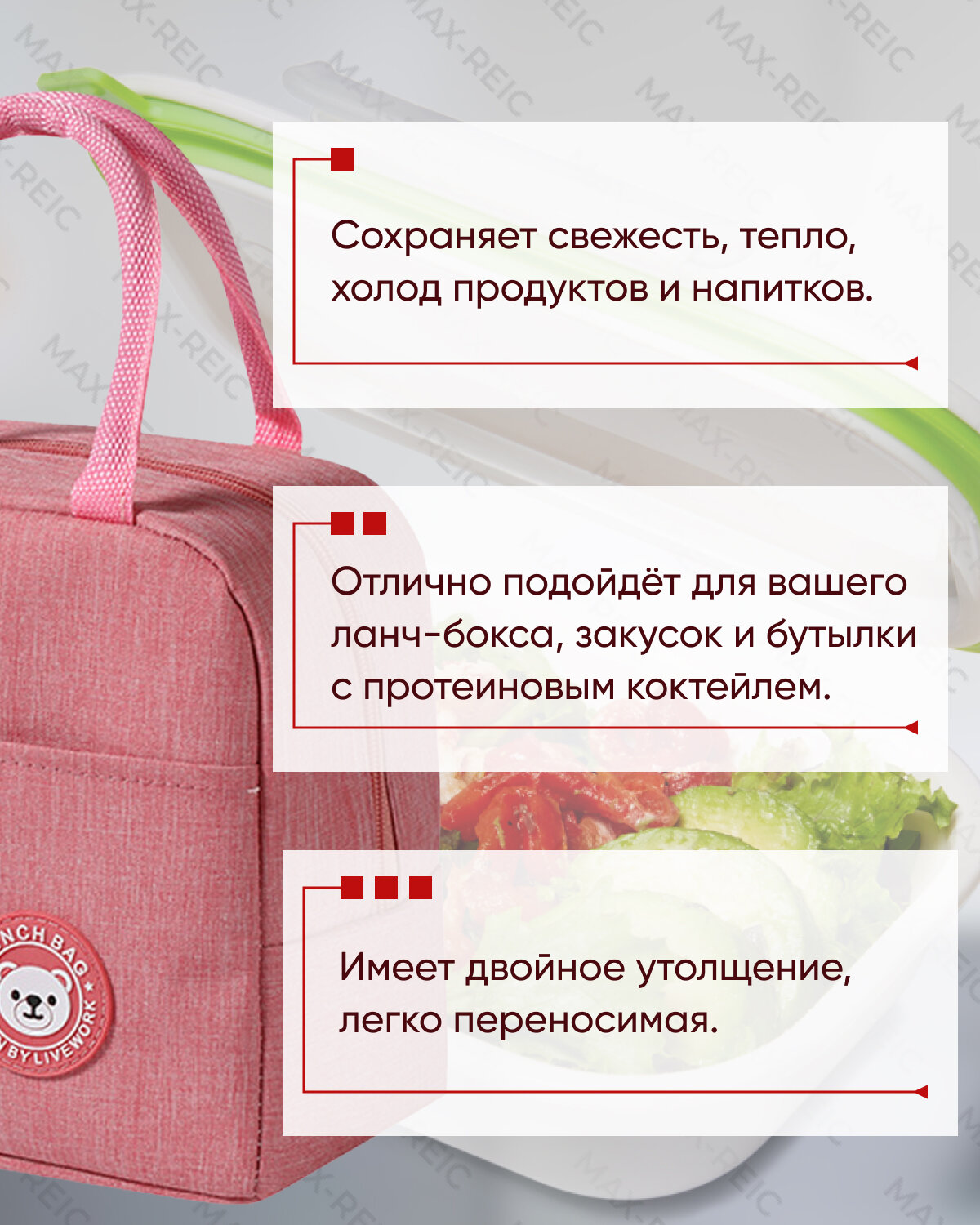 СохранитьСумка холодильник R-MAX объемом 6 литров, крепкими водонепроницаемыми швами для сохранения продуктов в тепле или холоде, розовая интересное: