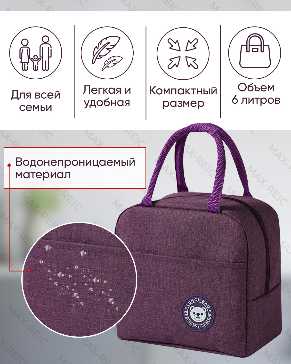 Купить Сумка холодильник R-MAX объемом 6 литров, крепкими водонепроницаемыми швами для сохранения продуктов в тепле или холоде, пурпурная