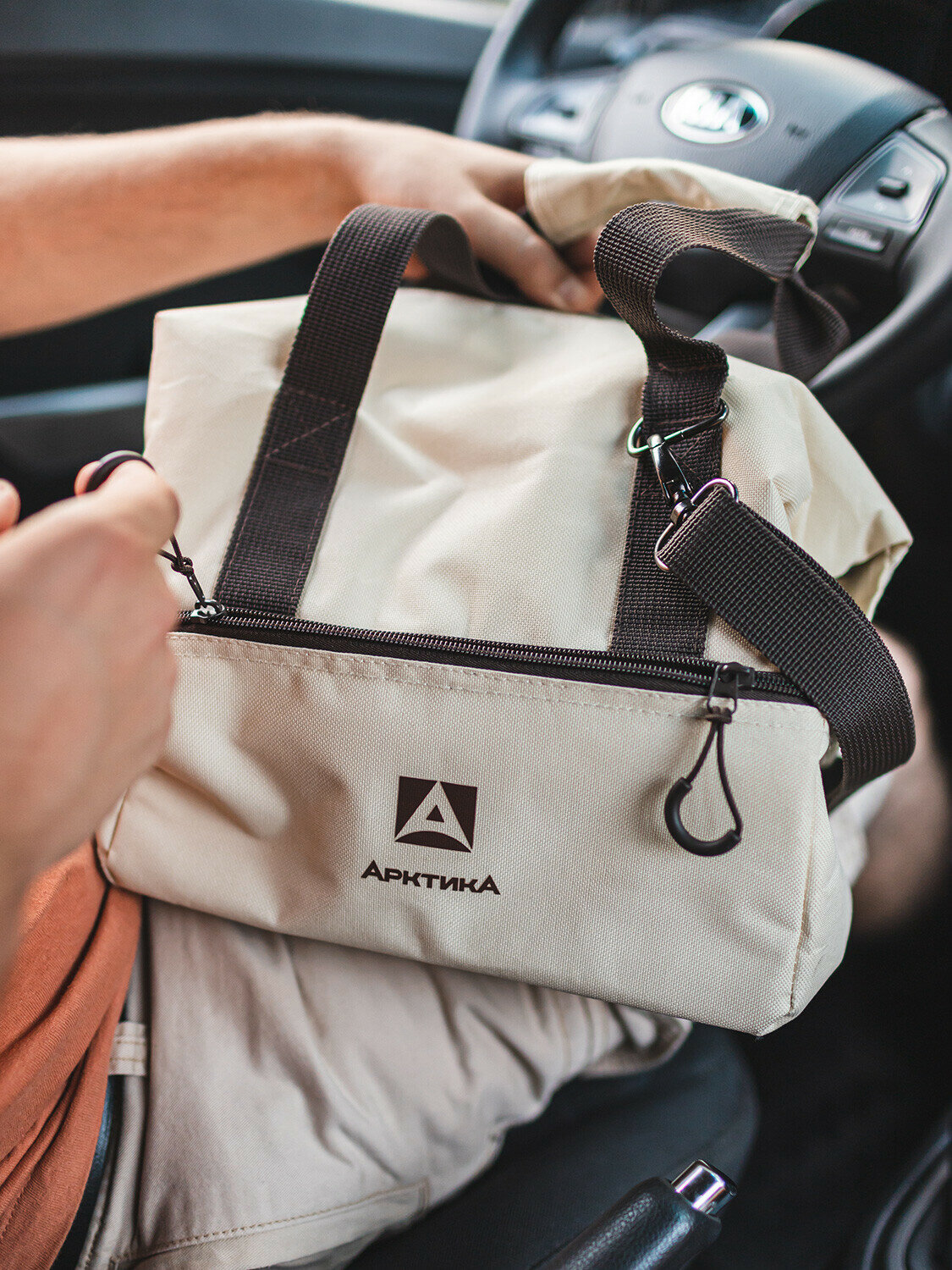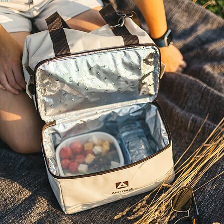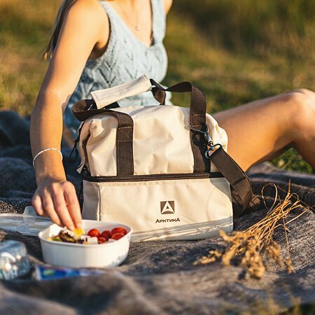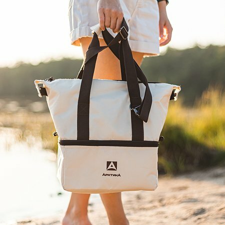 Термосумка холодильник Арктика 3600-11 бежевая 11,5 литров шоппер с ручками, плечевым ремнем и двумя отделениями