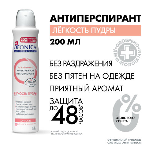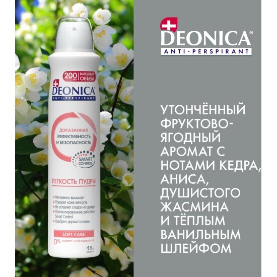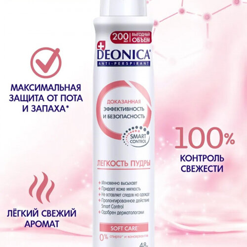 Deonica Антиперспирант Легкость пудры soft care, спрей, 200 мл, 200 г