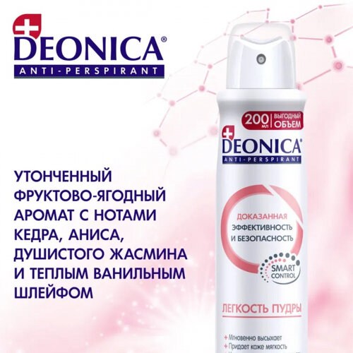 Дезодорант-антиперспирант, DEONICA, легкость пудры, женский, 200 мл, 2 шт