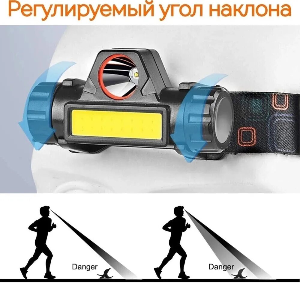 Компактный диодный USB заряжаемый налобный фонарь высокой мощности с зумом, магнитом и 4 режимами работы интересное: