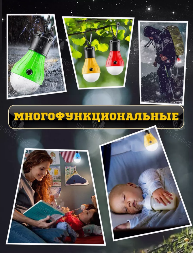 Подвесные светодиодные лампы для кемпинга, набор туристических светодиодных лампочек, 4 шт интересное: