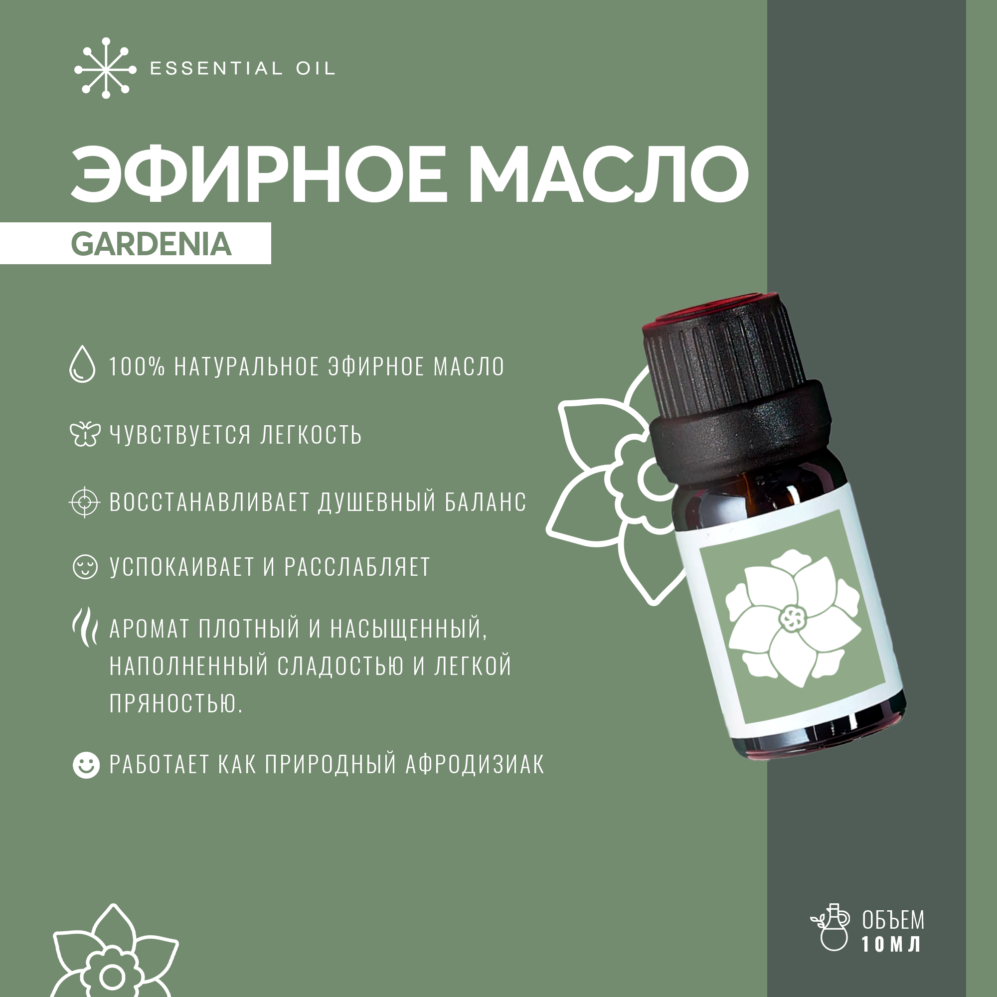 Купить Эфирное масло Гардении Essential oil/ Ароматическое масло 10 мл/ Натуральное масло для ароматерапии.