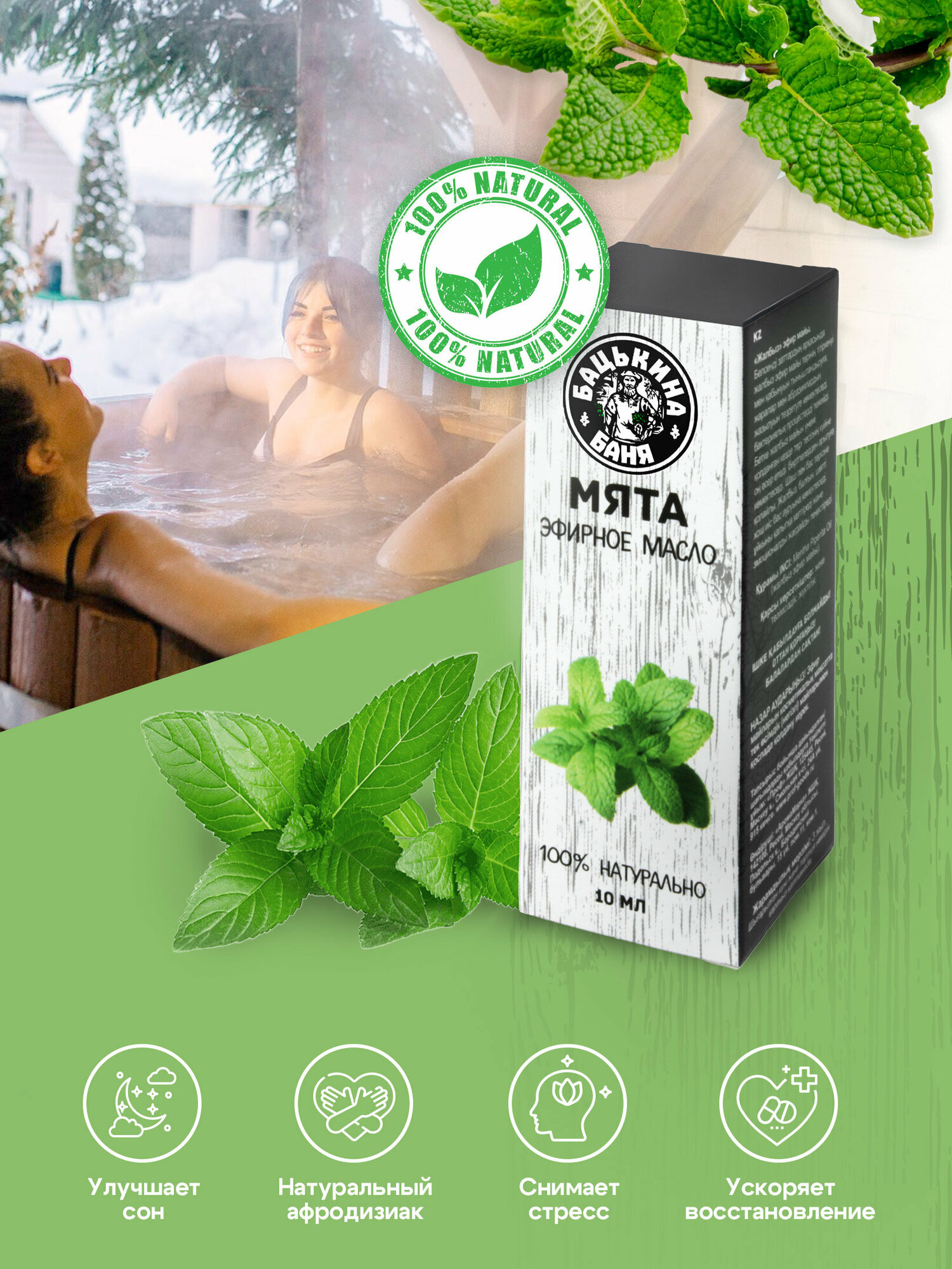 Эфирное масло Мята. Эфирные масла натуральные для бани и сауны, увлажнителя воздуха, аромалампы. Ароматизатор для дома, аромамасло