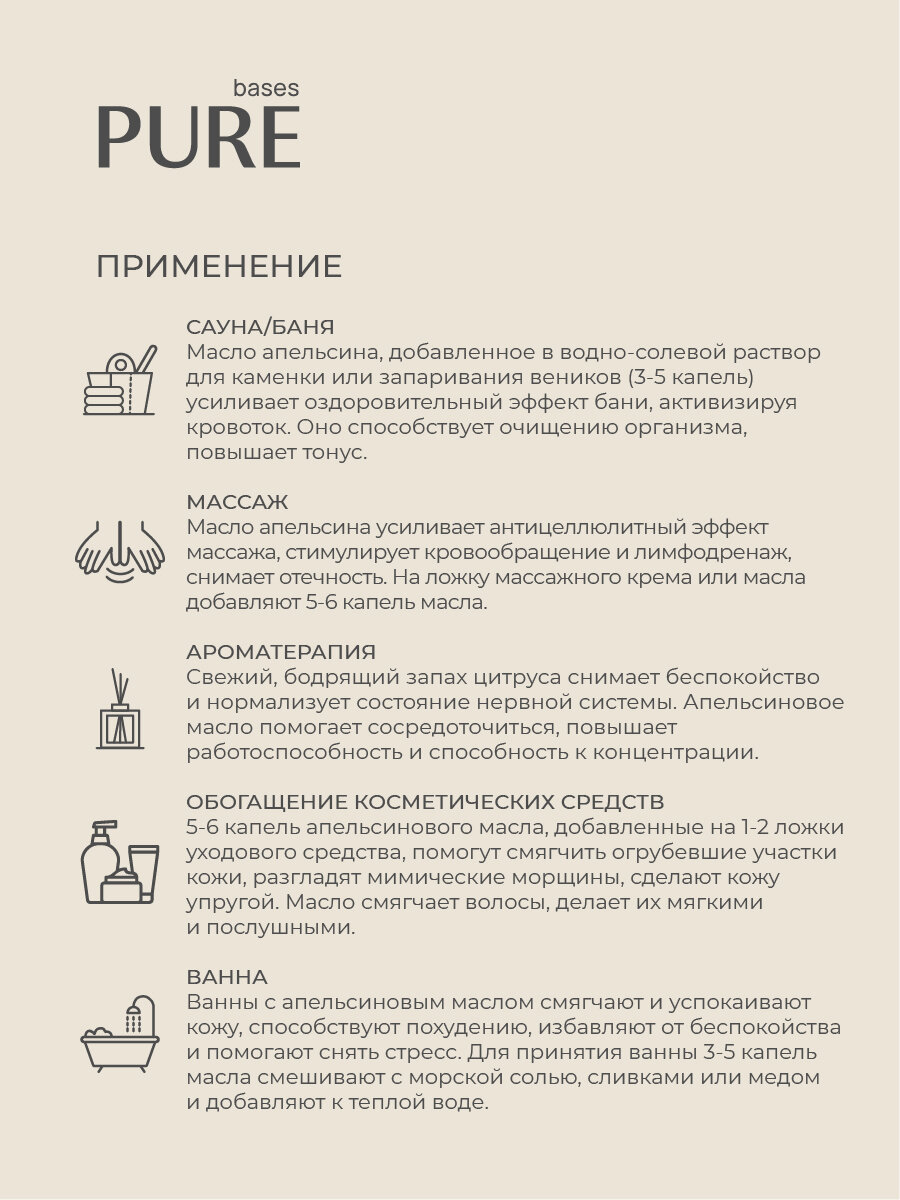Купить Натуральное 100% эфирное масло PURE BASES Апельсин, 10 мл.