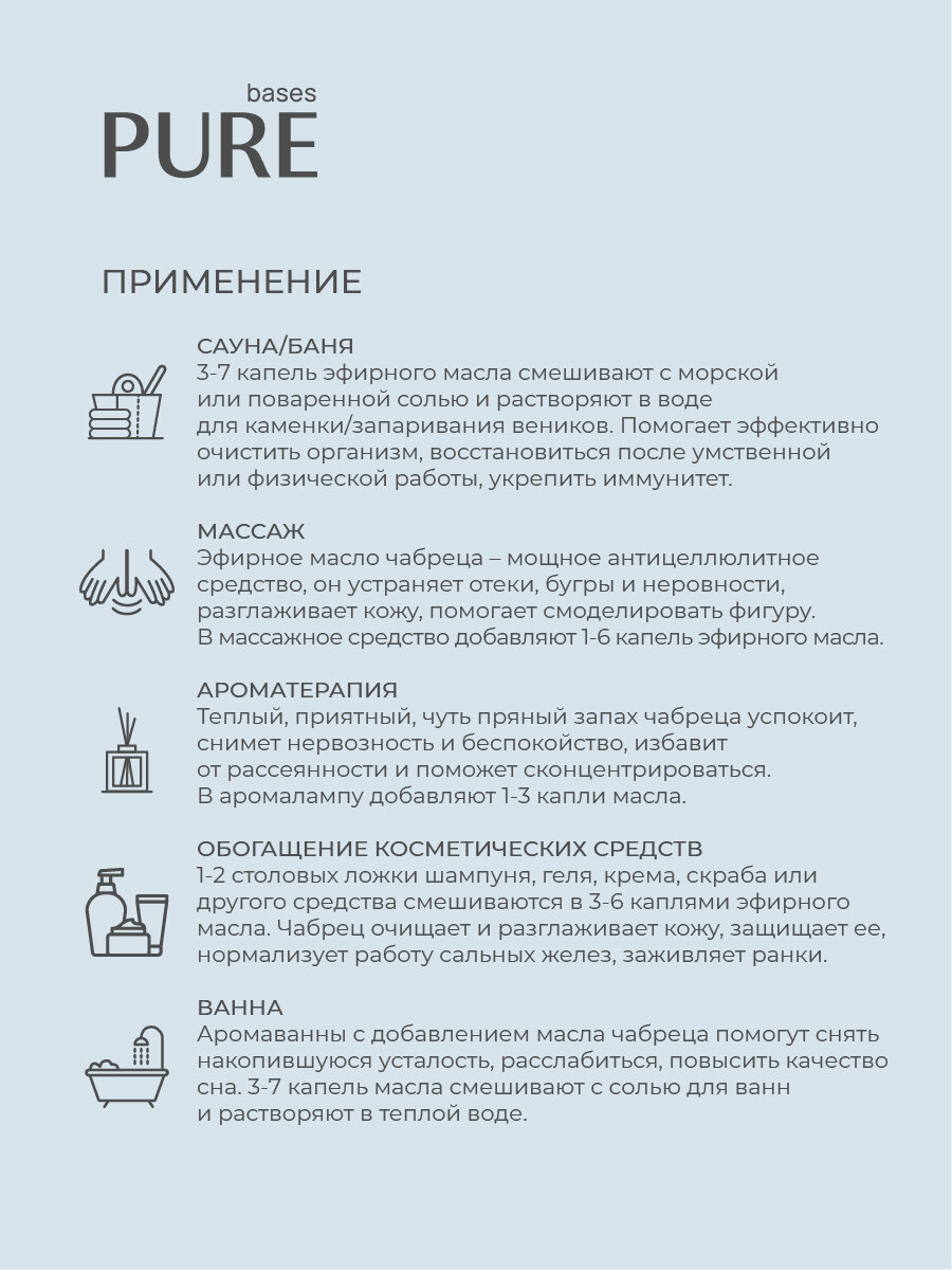 Купить Натуральное 100% эфирное масло PURE BASES Чабрец, 10 мл.