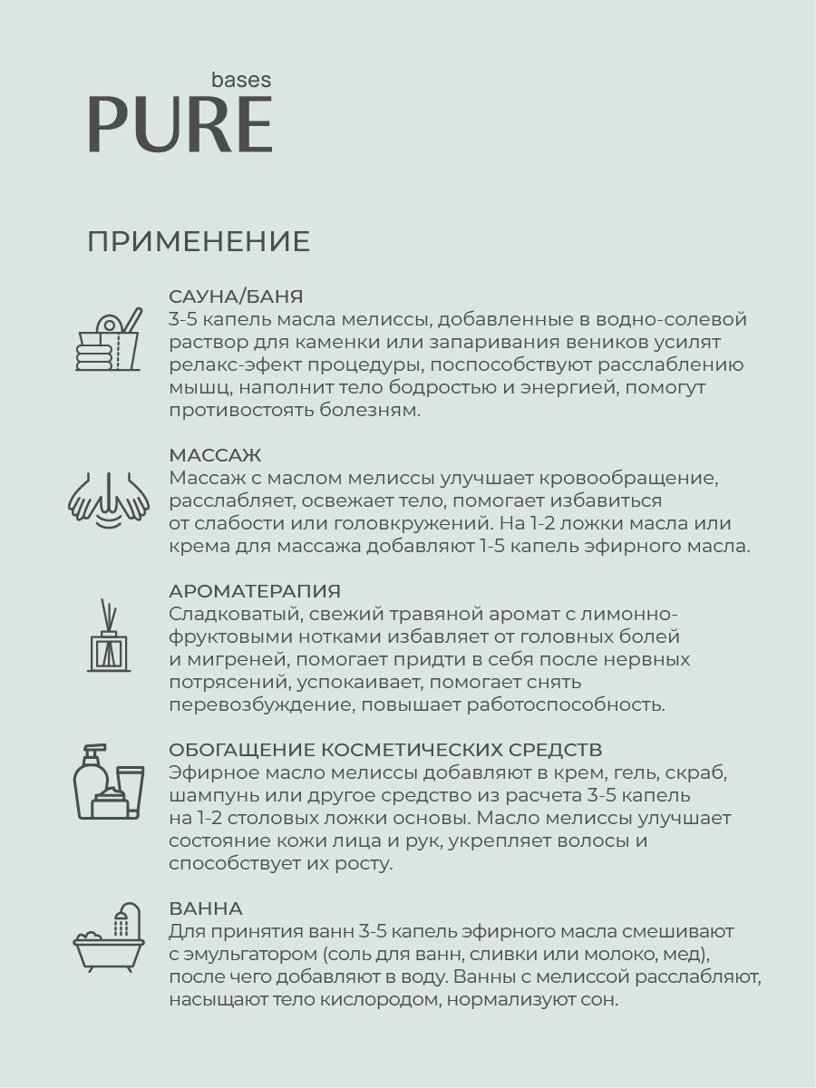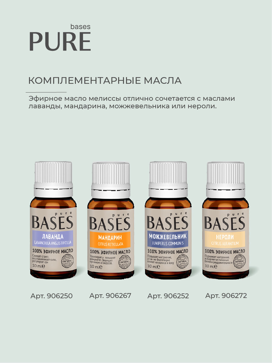 Купить Натуральное 100% эфирное масло PURE BASES Мелисса, 10 мл.