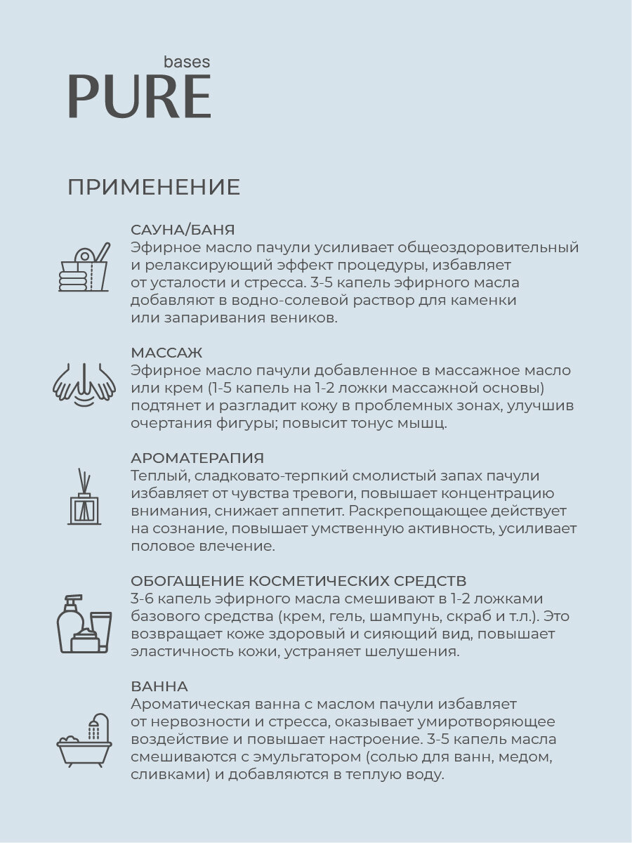 Купить Натуральное 100% эфирное масло PURE BASES Пачули, 10 мл.