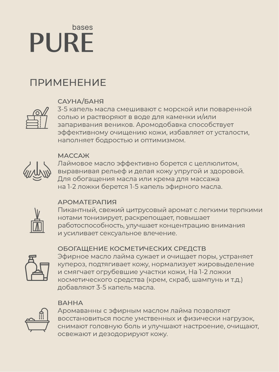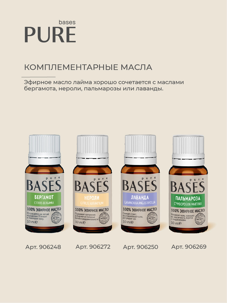 Купить Натуральное 100% эфирное масло PURE BASES Лайм, 10 мл.