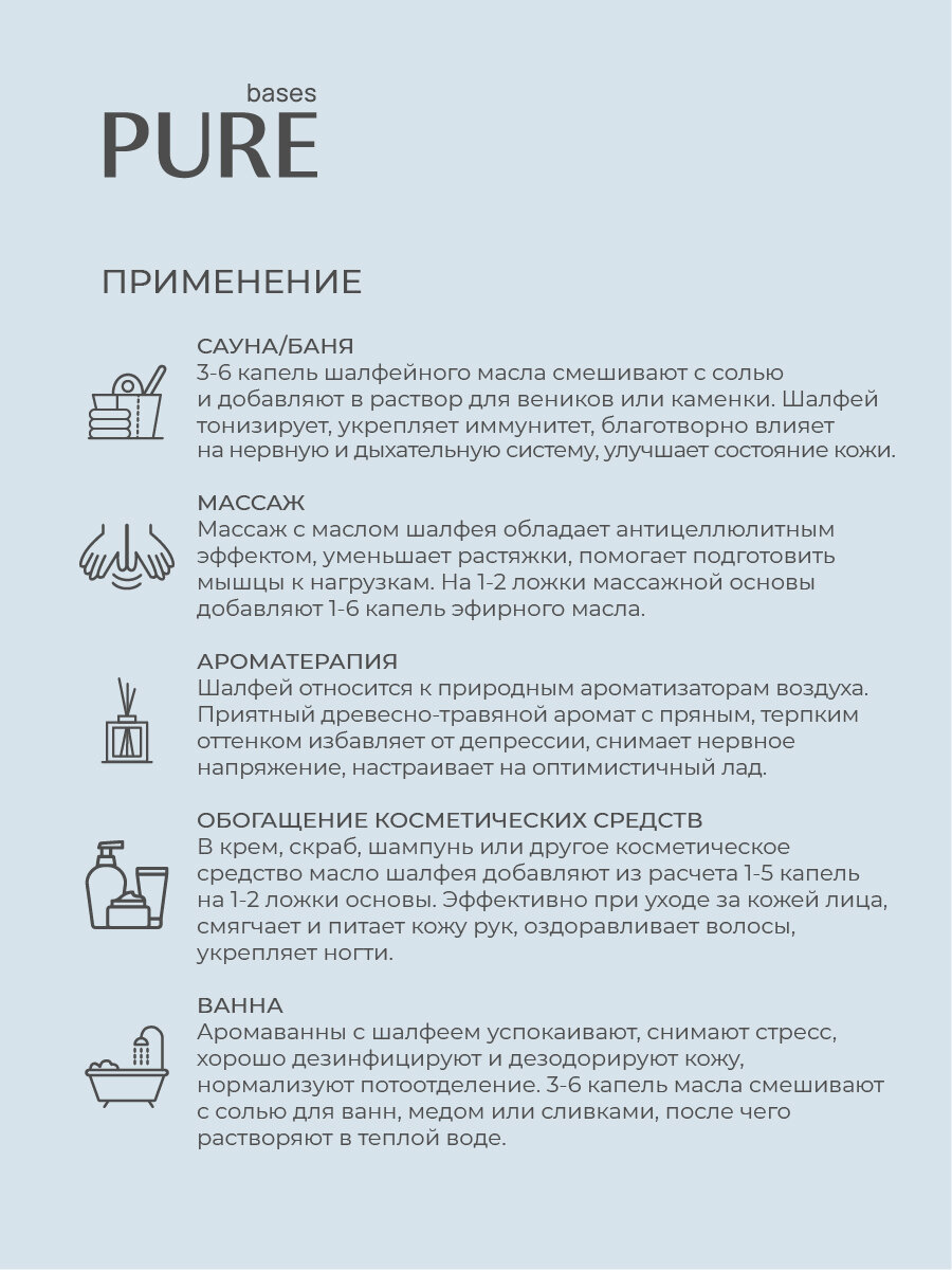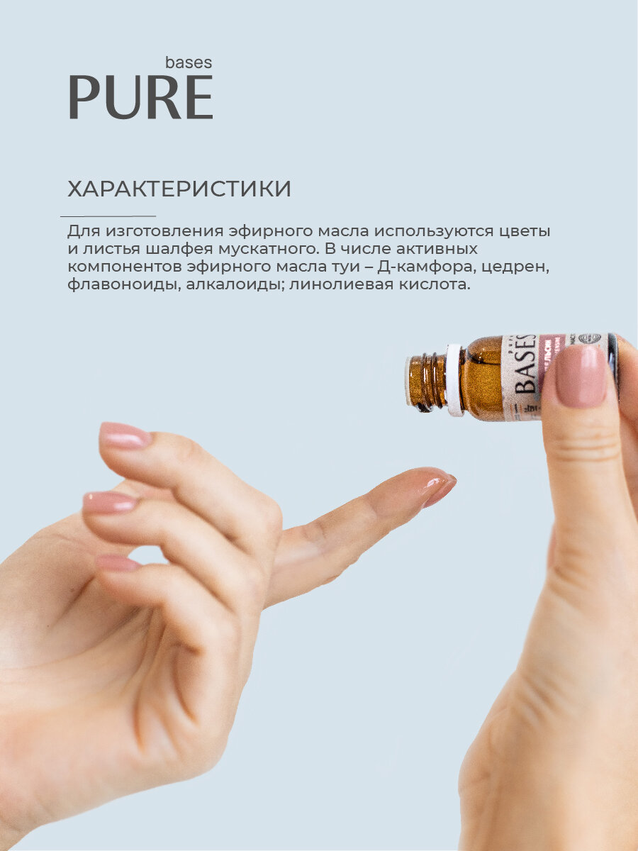 Купить Натуральное 100% эфирное масло PURE BASES Шалфей, 10 мл.