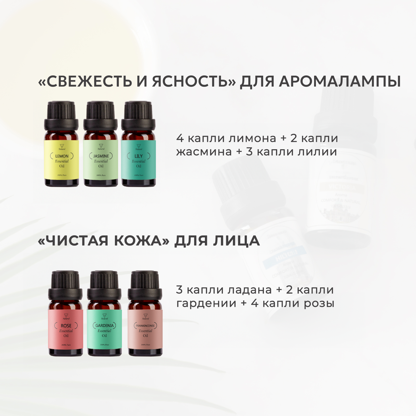 | Состав | 100%эфирное масло Розы.100%эфирное масло Жасмина.100%эфирное масло Лилии.100%эфирное масло Гардении.100%эфирное масло Ладан.100%эфирное масло Лимона. |