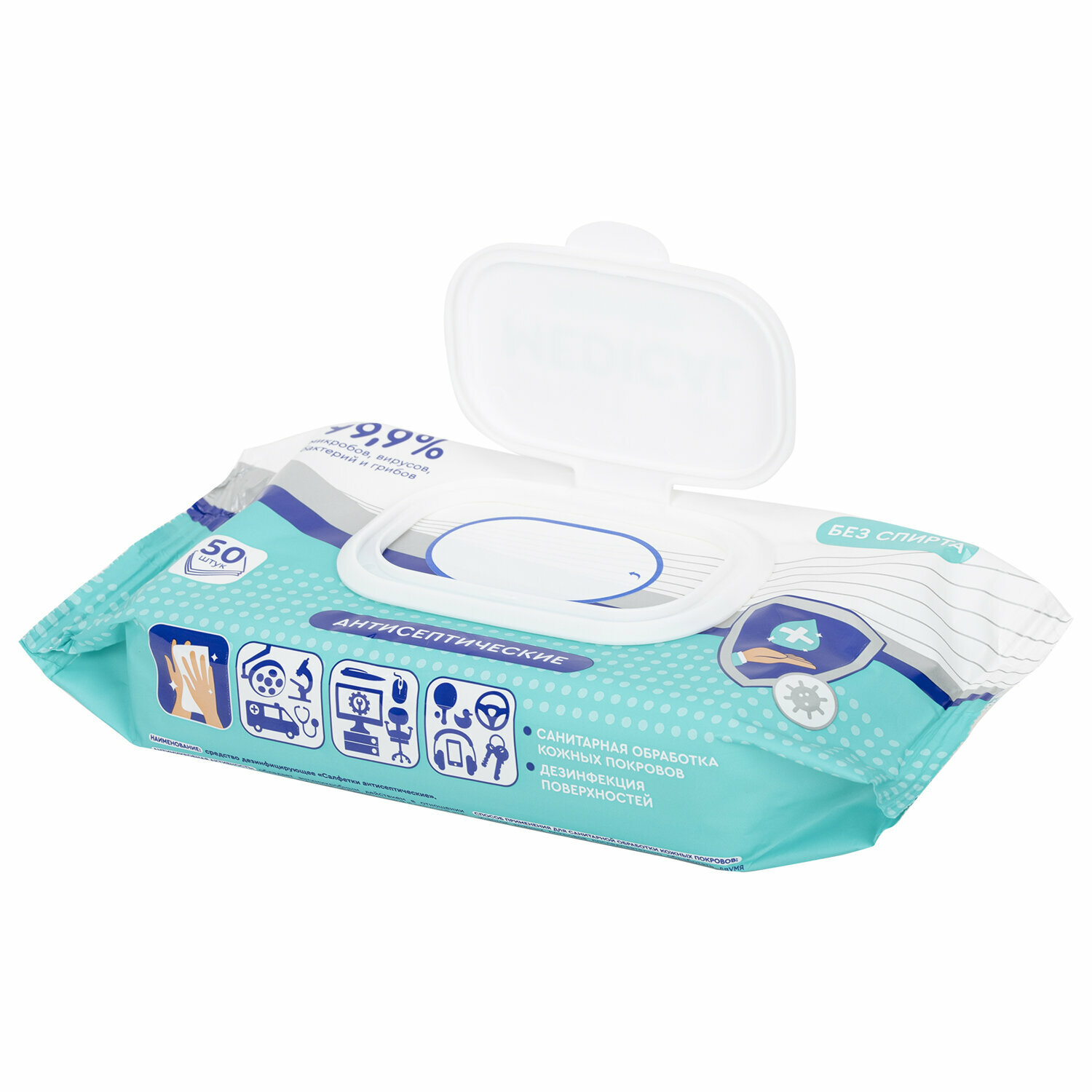smart MEDICAL Влажные салфетки Smart medical, антисептические, с пластиковым клапаном 50 шт.
