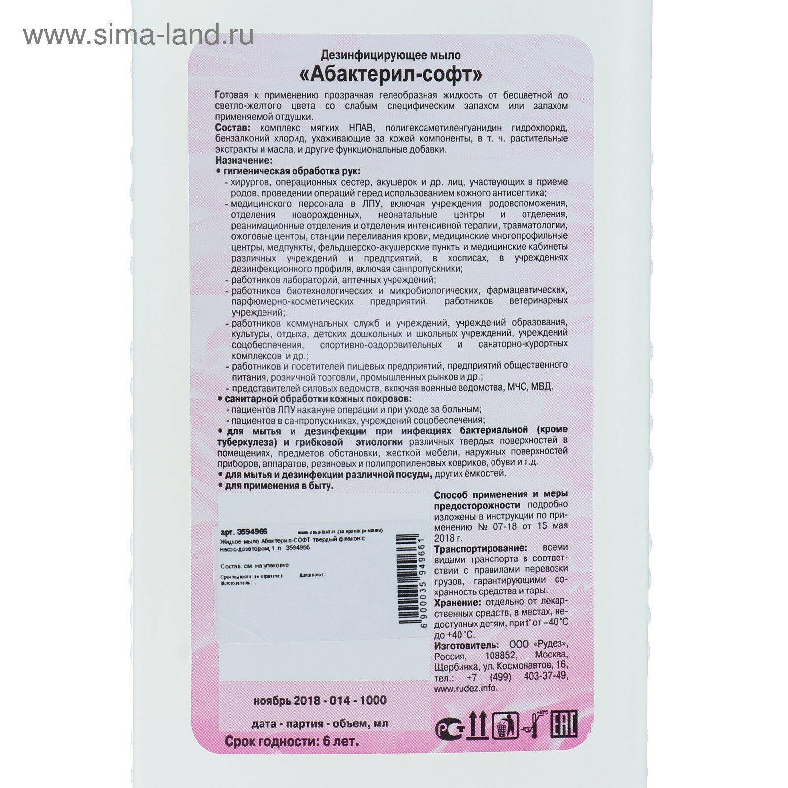 1 шт. Абактерил-Софт, дезинфицирующее мыло 1 л. ГОСТ 12.1.007-76