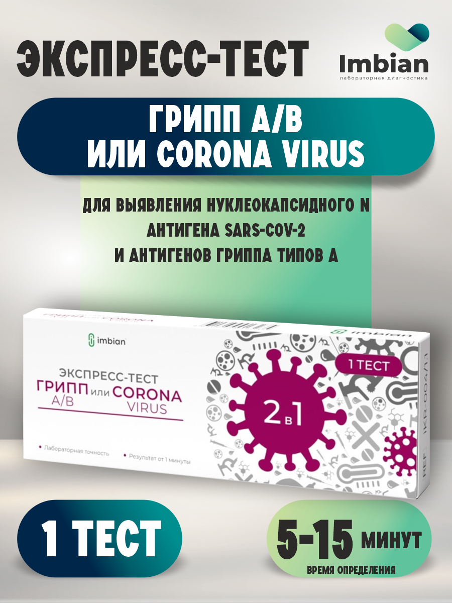 Экспресс-тест Имбиан на коронавирус + грипп А/В (антиген) х 2 шт.