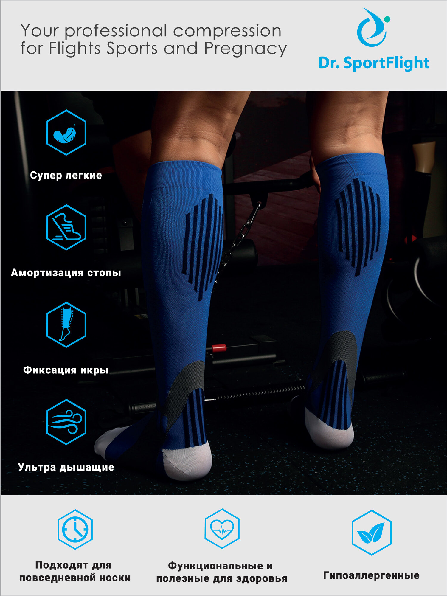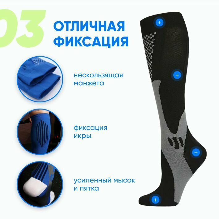 Компрессионные спортивные гольфы 2 класс Dr. SportFlight от травм и отечности для перелетов, для бега, 1 пара интересное: