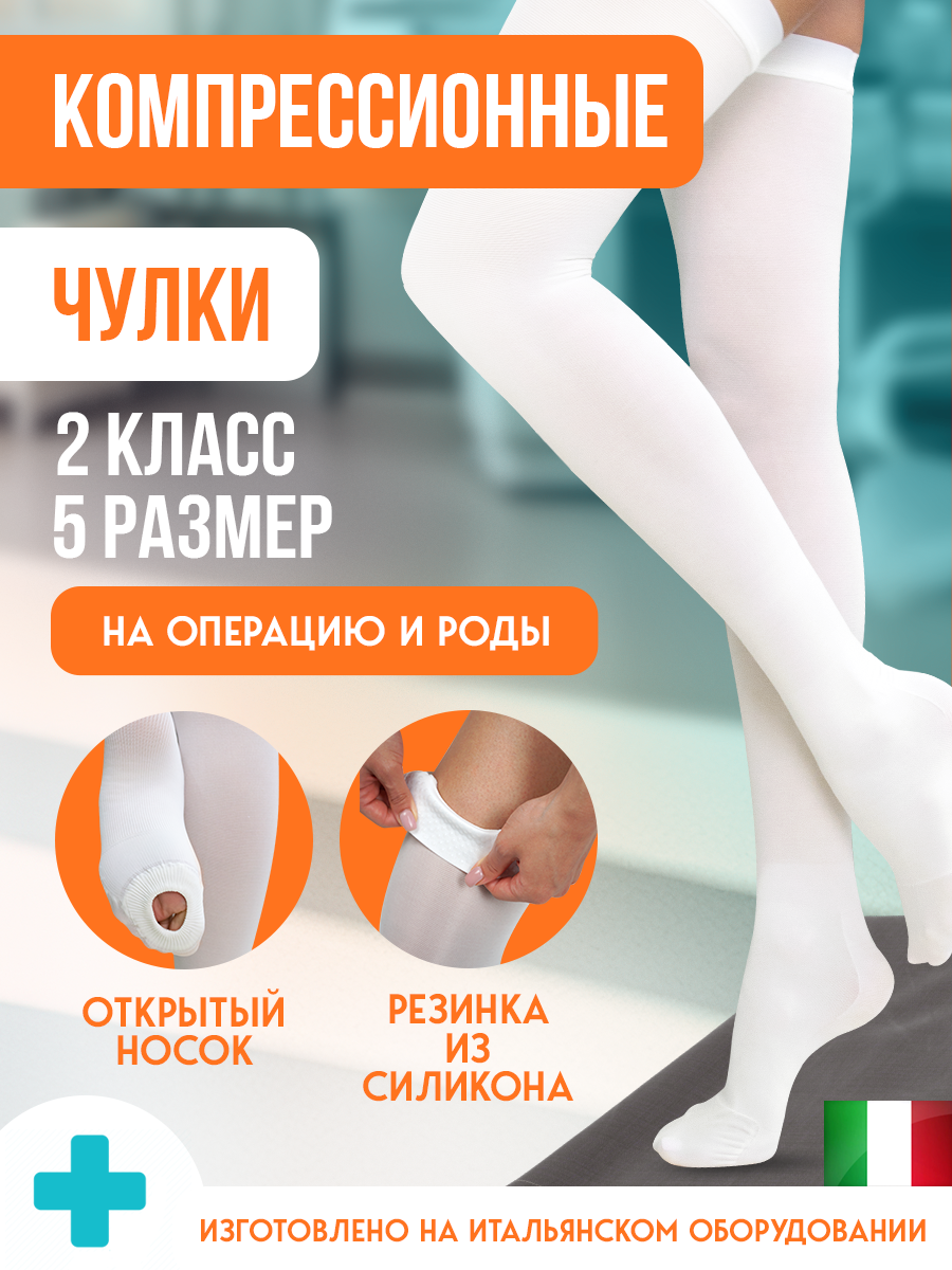 Medicaland Hospital Антиэмболические чулки (2 класс), размер №5, открытый носок, белые / Медикаленд Хоспитал интересное: