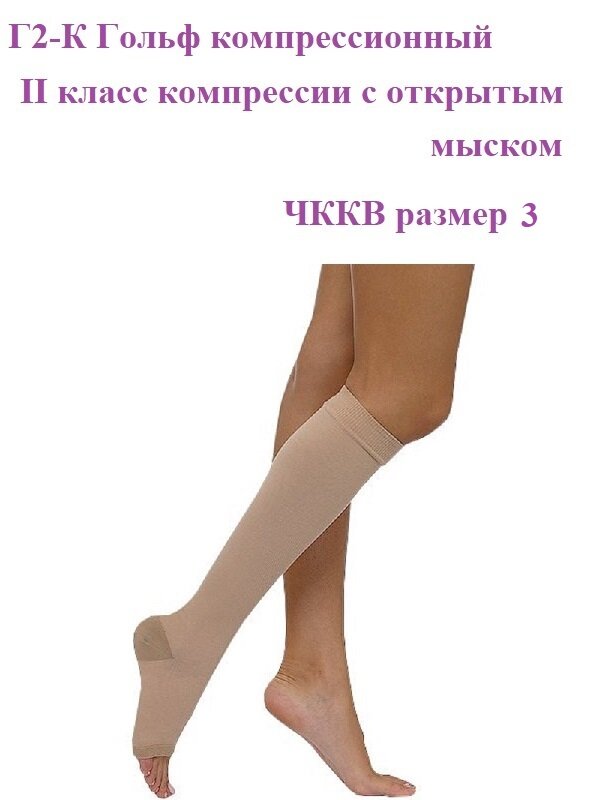 Гольф компрессионный II класс компрессии с открытым мыском ЧККВ размер 3, бежевый