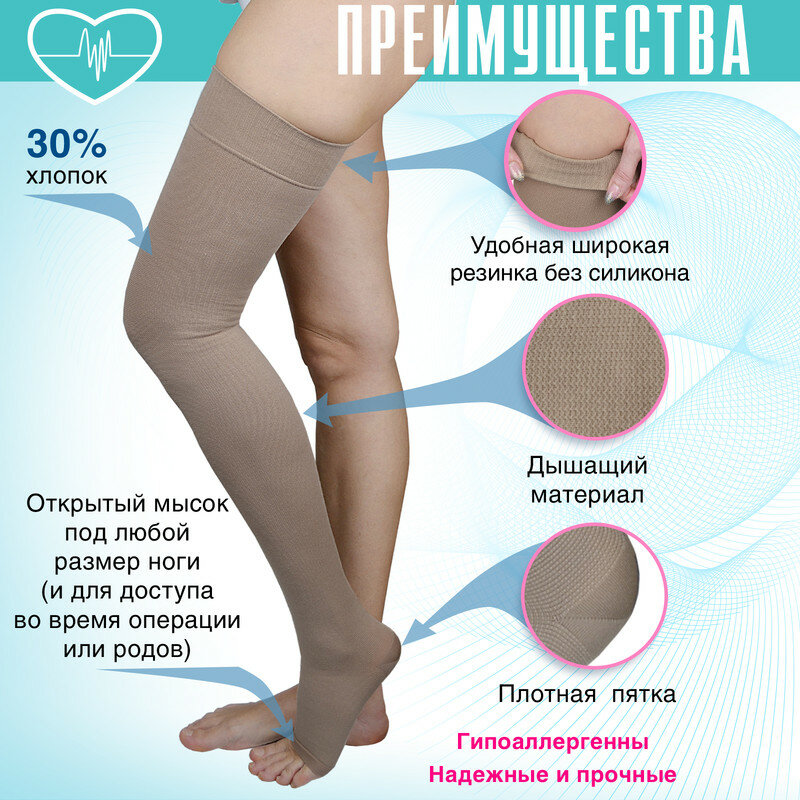 Чулок компрессионный (моночулок) 2 класс, с открытым носком (МТ-Ч2-К/4-КРЕМ), кремовый 4