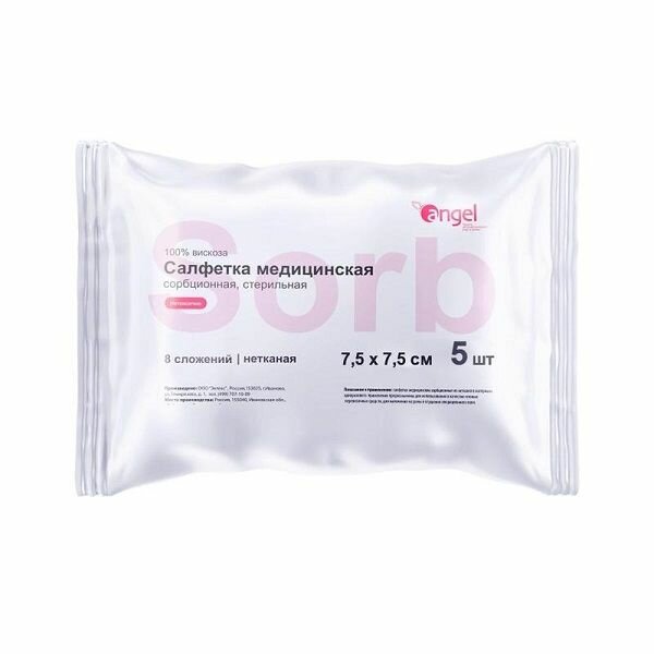 Салфетка медицинская сорбционная нетканая стерильная 12-слойная Angel 7,5см х 7,5см 5шт интересное: