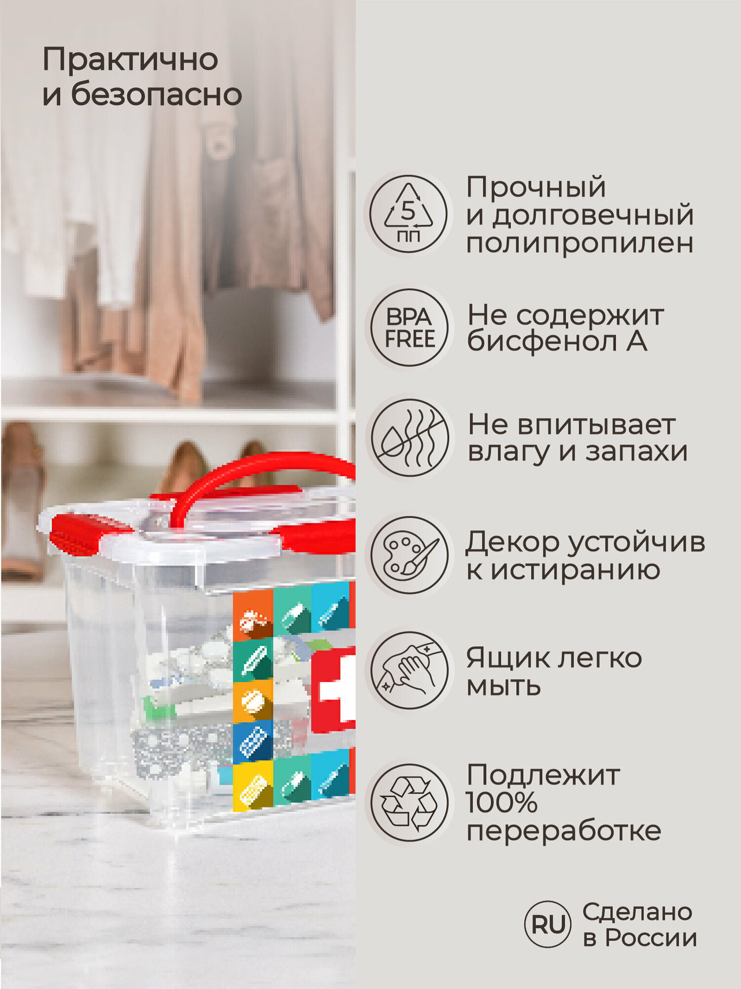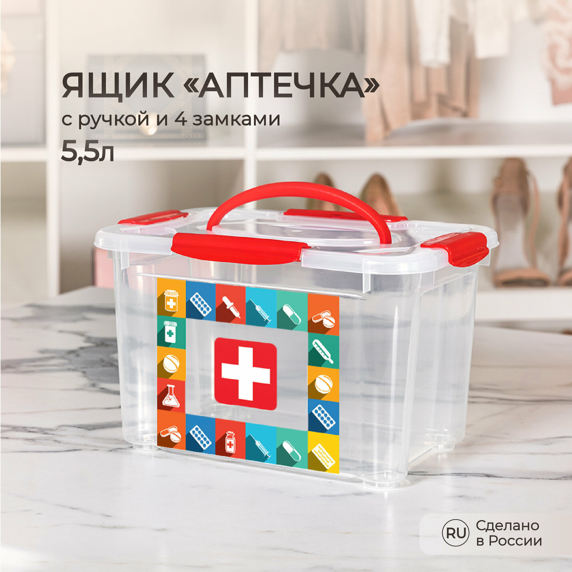 Домашний контейнер-аптечка универсальный с ручкой и декором "Аптечка с крестом" 5,5 л (бесцветный) интересное: