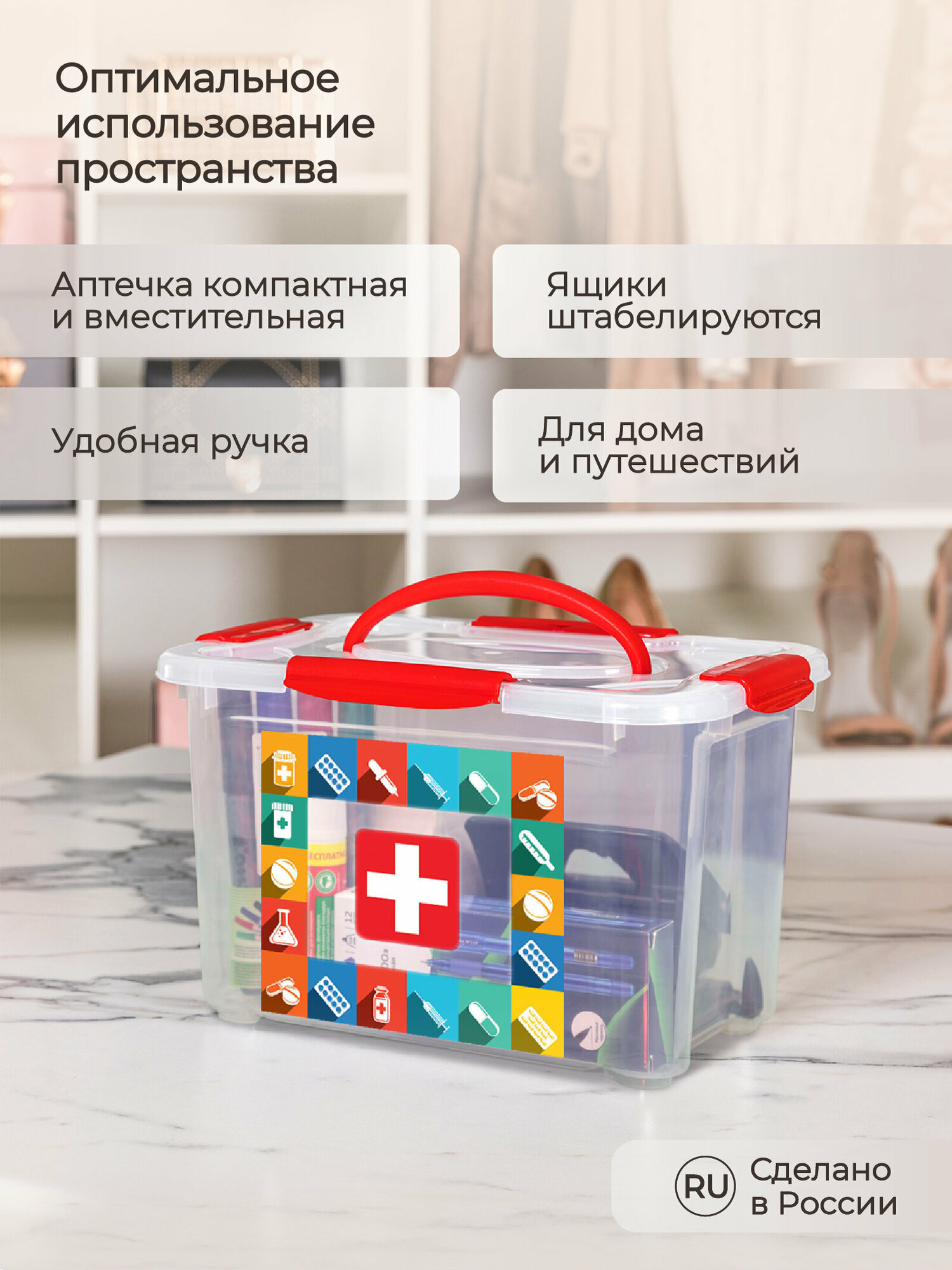Аптечка домашняя 5,5 л, контейнер для хранения лекарств пластиковый с крышкой и ручкой органайзер