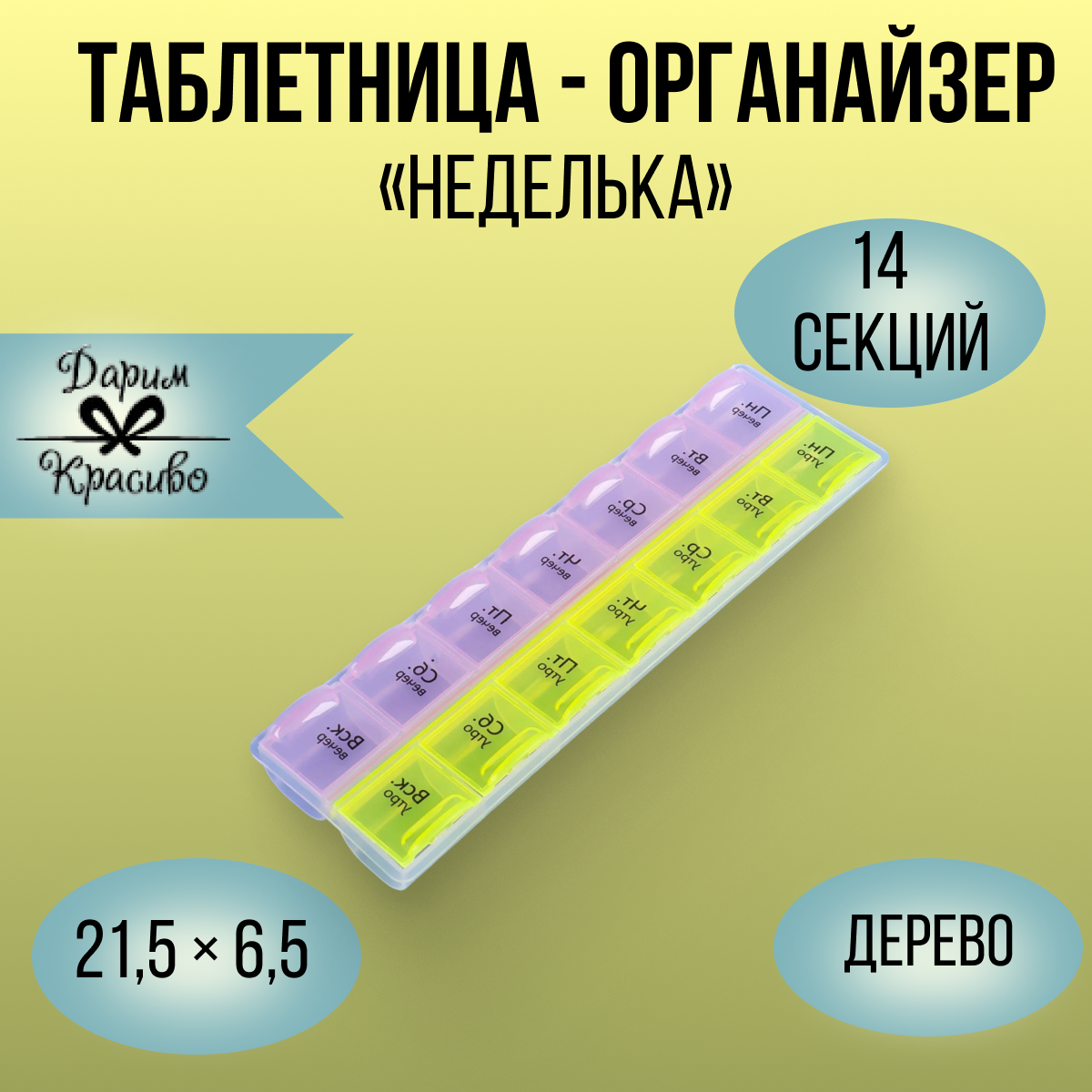 Таблетница-органайзер «Неделька», русские буквы, утро/вечер, 21,5 × 6,5 × 2 см, 14 секций, цвет микс интересное: