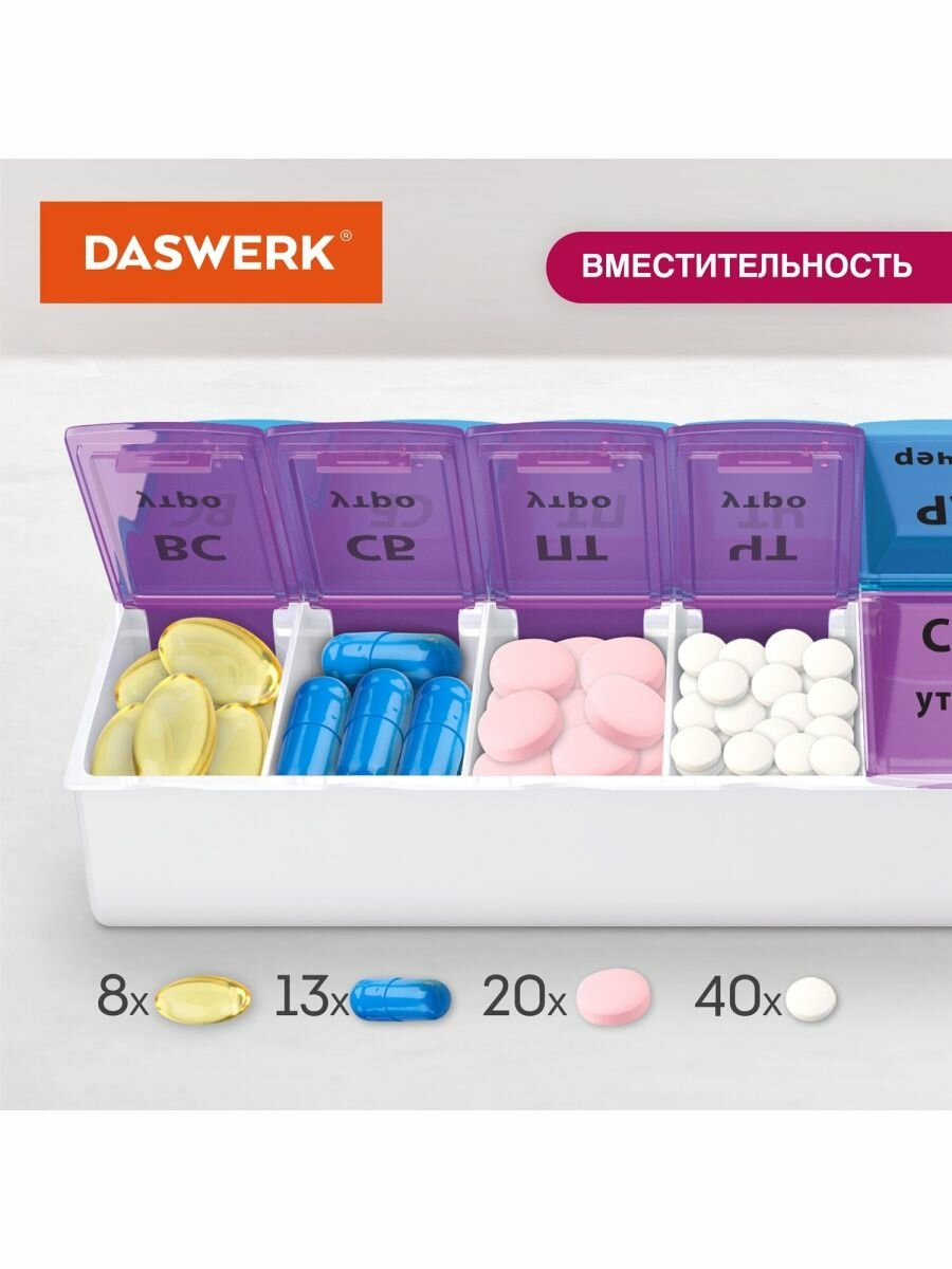 | Дополнительная информация | Таблетница/контейнер-органайзер для лекарств и витаминов DASWERK 7 дней/2 приема Maxi - 1 шт |