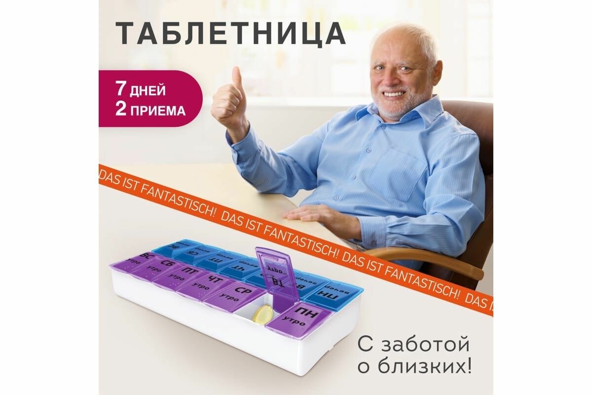 СохранитьТаблетница на 7 дней / органайзер / бокс / контейнер на неделю для хранения таблеток и лекарств 2 приема Большой Объем, Daswerk интересное: