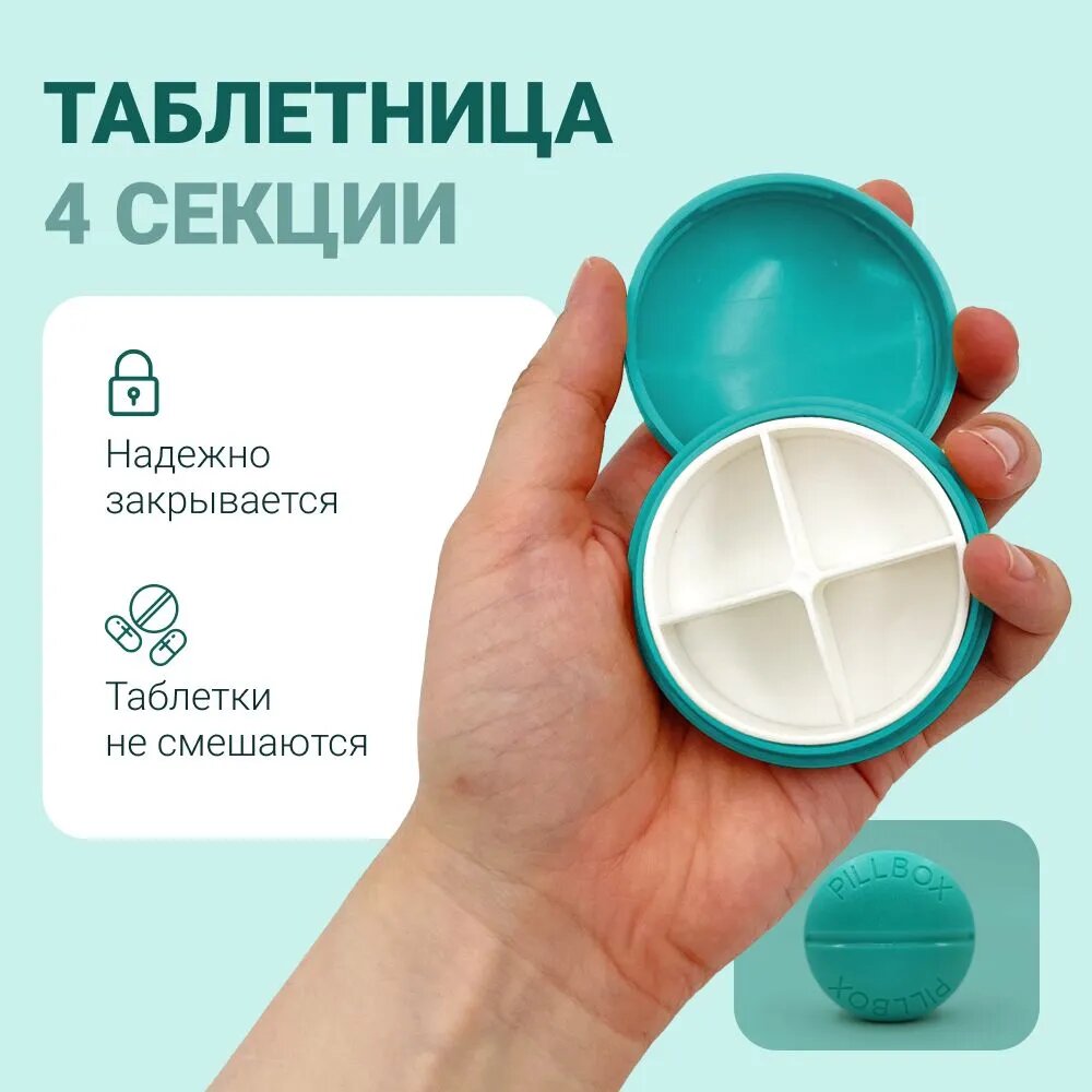 Таблетница на день для пилюль, контейнер для таблеток, 4 секции (бирюзовый) интересное: