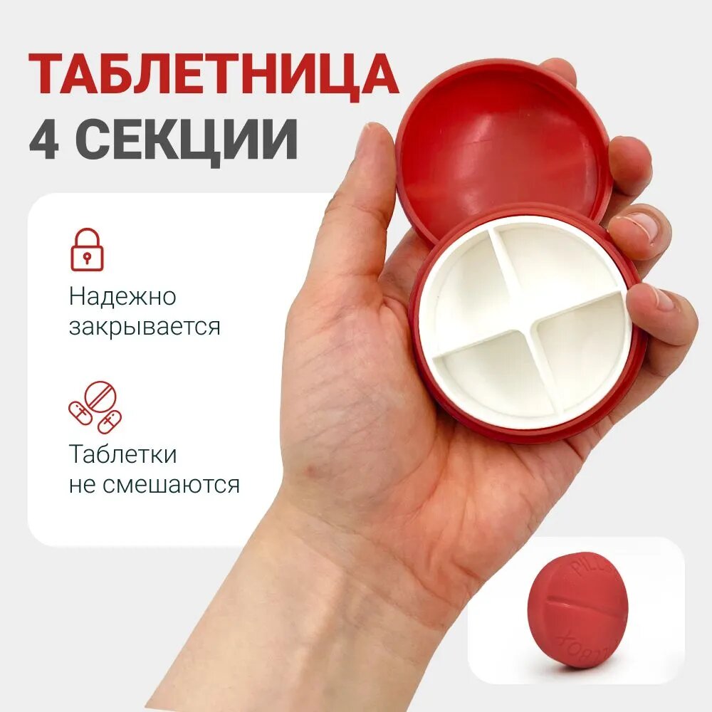 Таблетница на день для пилюль, контейнер для таблеток, 4 секции (красный) интересное: