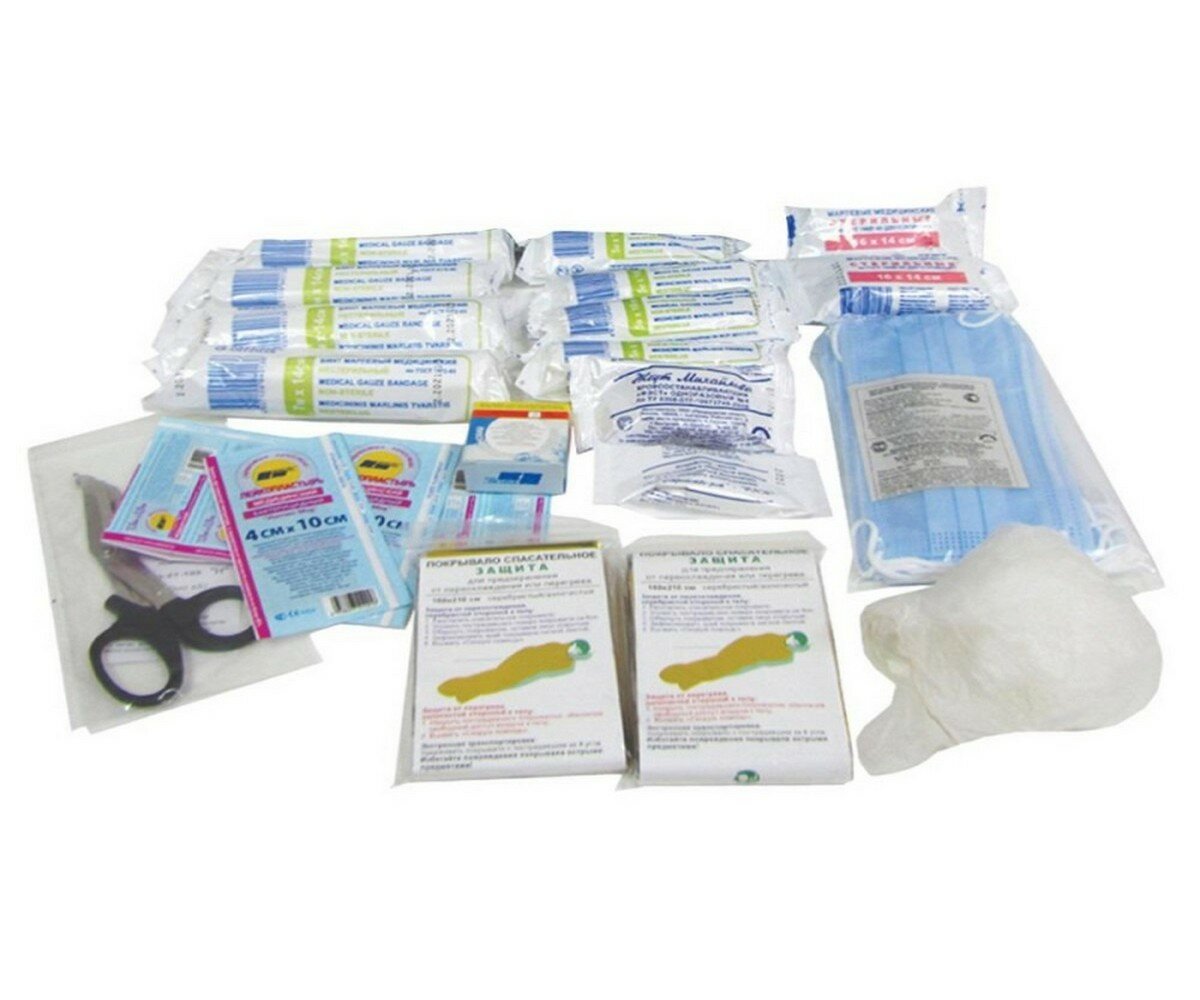 | Состав | маска медицинская нестерильная одноразовая - 10 шт., перчатки медицинские нестерильные, размером не менее м - 2 пары, устройство для проведения искусственного дыхания «Рот-Устройство-Рот» - 1 шт., жгут кровоостанавливающий для остановки артериального кровотечения - 1 шт., бинт марлевый медицинский размером не менее 5 м x 10 см - 4 шт., бинт марлевый медицинский размером не менее 7 м x 14 см - 4 шт., салфетки марлевые медицинские стерильные размером не менее 16 x 14 см №10 - 2 уп., лейкопластырь фиксирующий рулонный размером не менее 2 x 500 см - 1 шт., лейкопластырь бактерицидный размером не менее 1,9 x 7,2 см - 10 шт., лейкопластырь бактерицидный размером не менее 4 x 10 см - 2 шт., покрывало спасательное изотермическое размером не менее 160 x 210 см - 2 шт., нНожницы для разрезания повязок - 1 шт., инструкция по оказанию первой помощи с применением аптечки для оказания первой помощи работникам - 1 шт; |