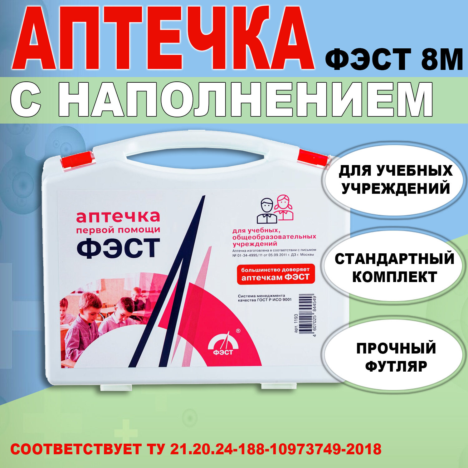Аптечка первой помощи для учебных и общеобразовательных учреждений ФЭСТ, футляр полистирол (футляр 8М), 1193 интересное: