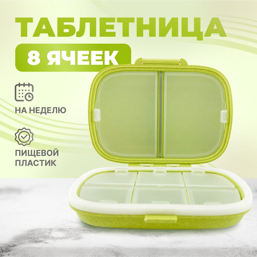 Таблетница на неделю, контейнер для таблеток, 8 секций (зеленый) интересное: