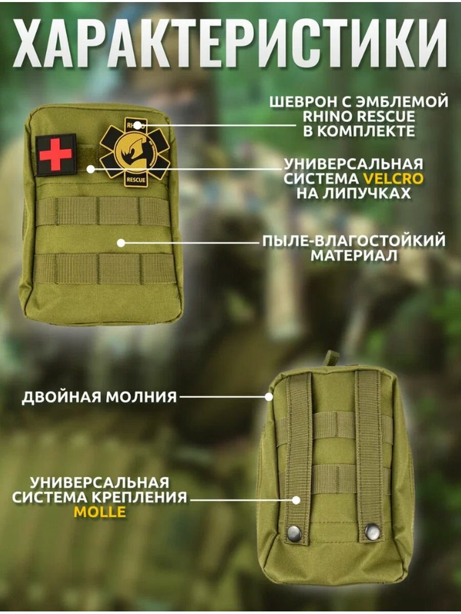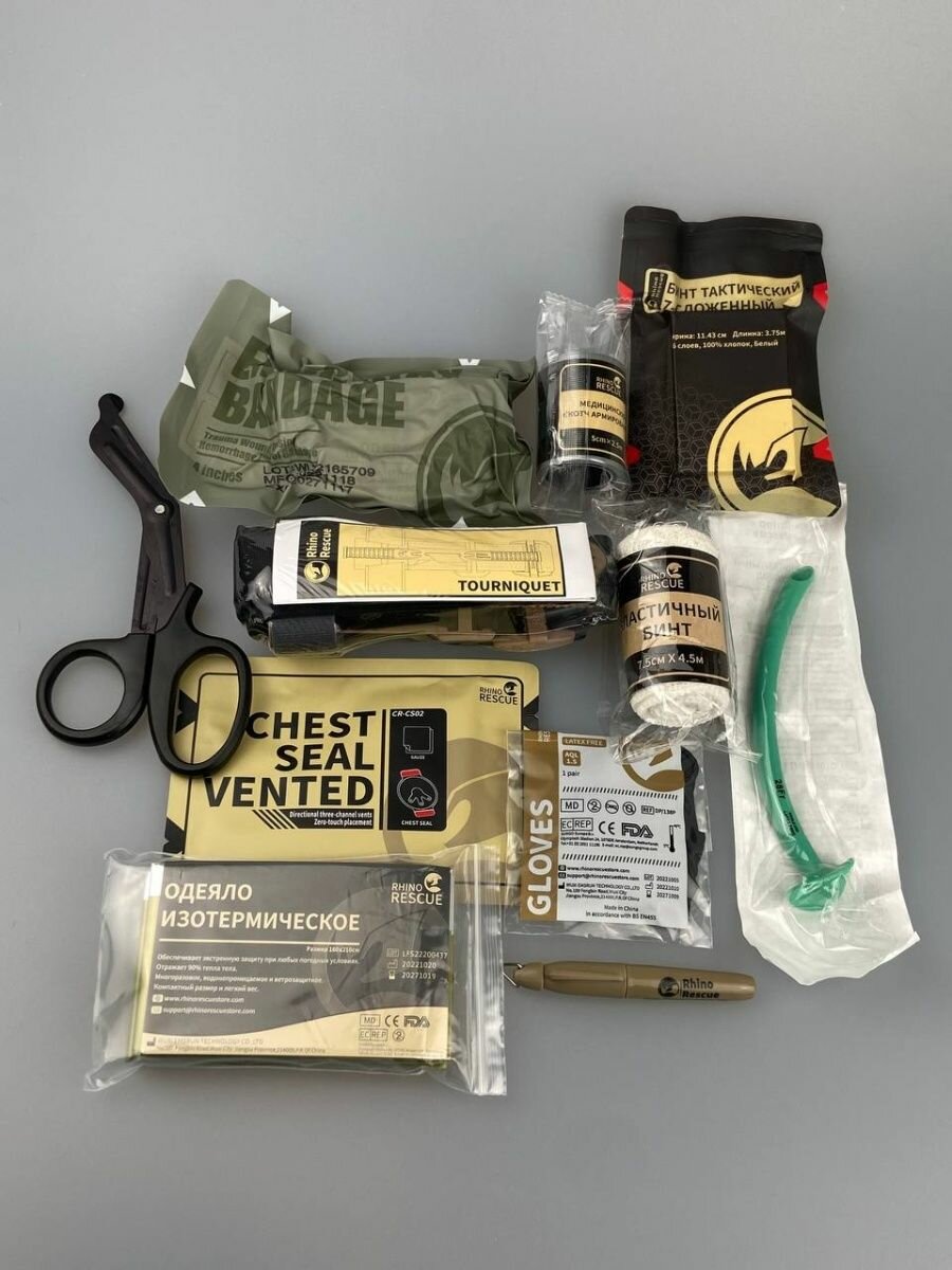 Rhino Rescue Аптечка медицинская тактическая первой помощи 10 предметов с подсумком