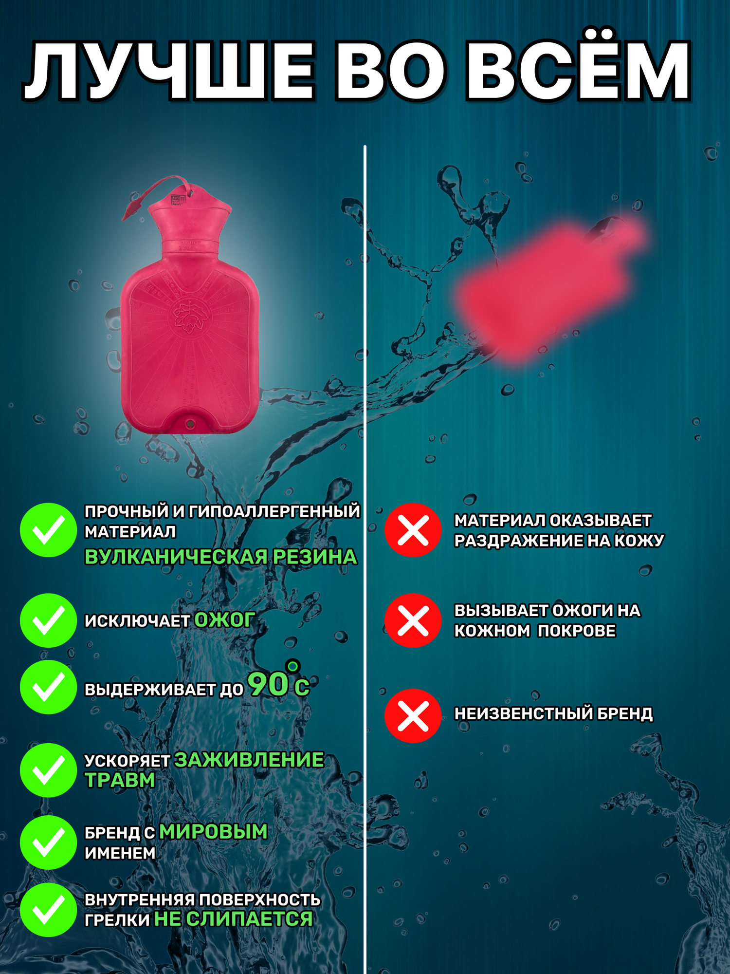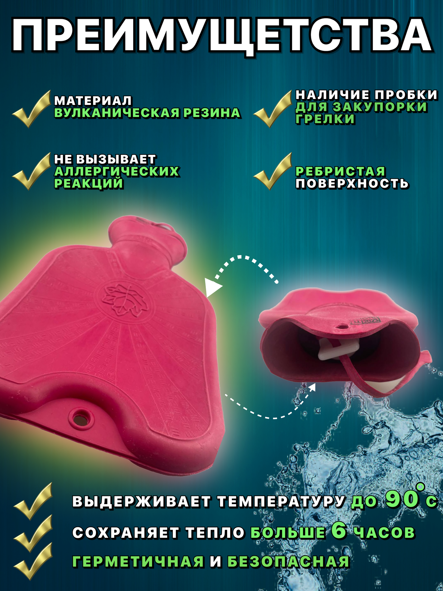 Грелка водная резиновая многоразовая многофункциональная типа А на 1 литр для тела, рук и ног интересное: