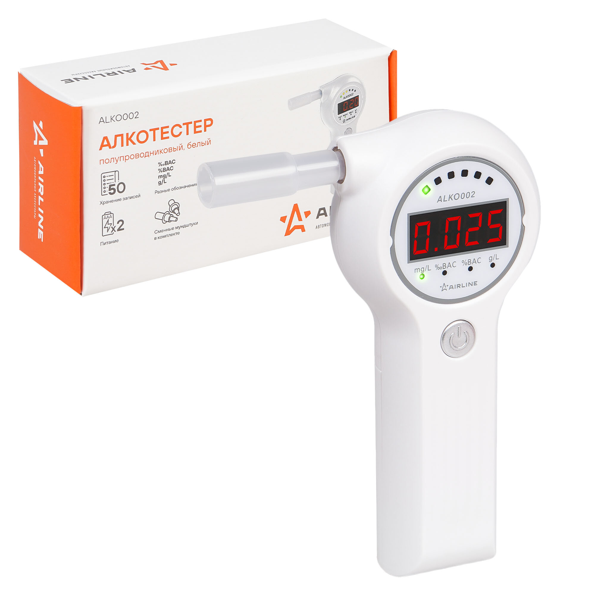 Алкотестер полупроводниковый белый (AIRLINE) интересное: