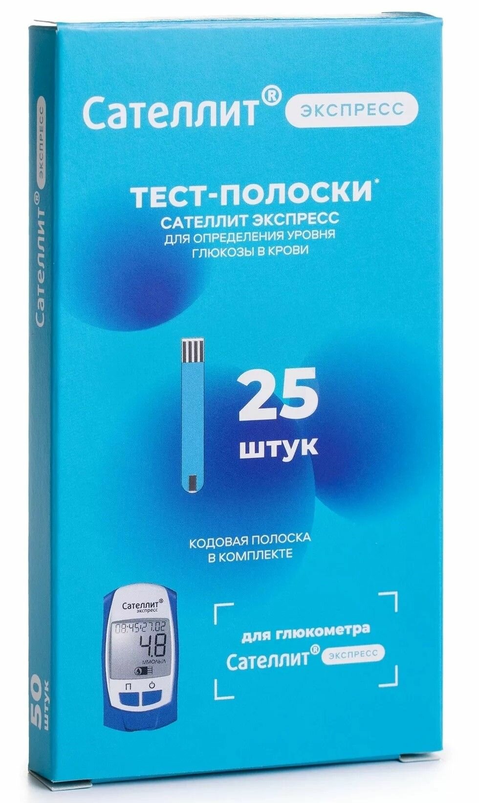 Глюкометр Сателлит Online (Онлайн) + тест-полоски Экспресс (25 шт.) + ручка-прокалыватель в наборе, измеритель сахара в крови