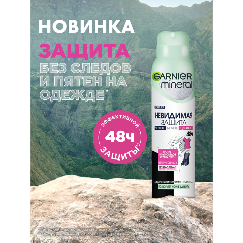 Garnier Дезодорант-антиперспирант Garnier Mineral «Чёрное, белое, цветное», невидимый, защита 48 часов, аэрозоль, 150 мл
