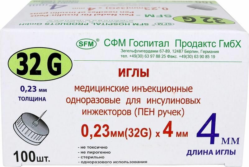 SFM Игла для шприц-ручек 32G 0,23 х 4 мм,100 шт. интересное: