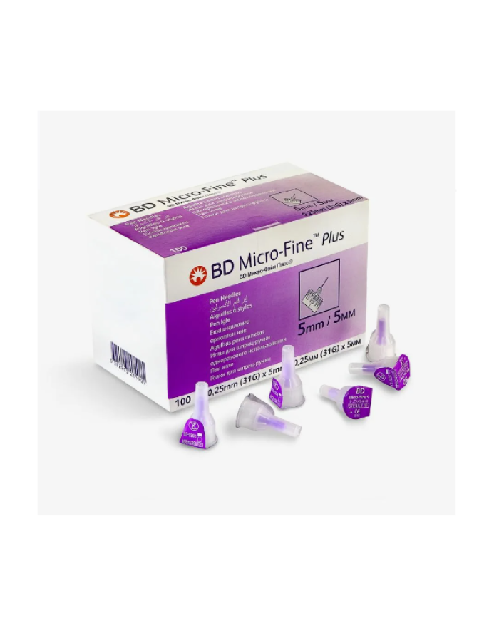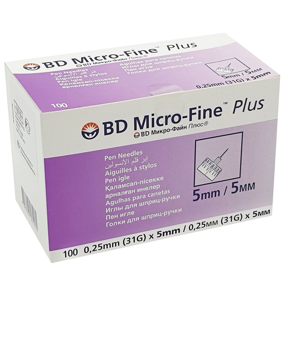 Иглы для инсулиновых шприц-ручек BD Micro-Fine Plus 5мм (Ирландия) 100 штук в упаковке.