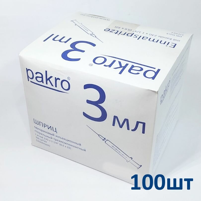 Шприц Pakro 3 мл №100, игла 0,6х32 медицинский одноразовый трехкомпонентный, Германия интересное: