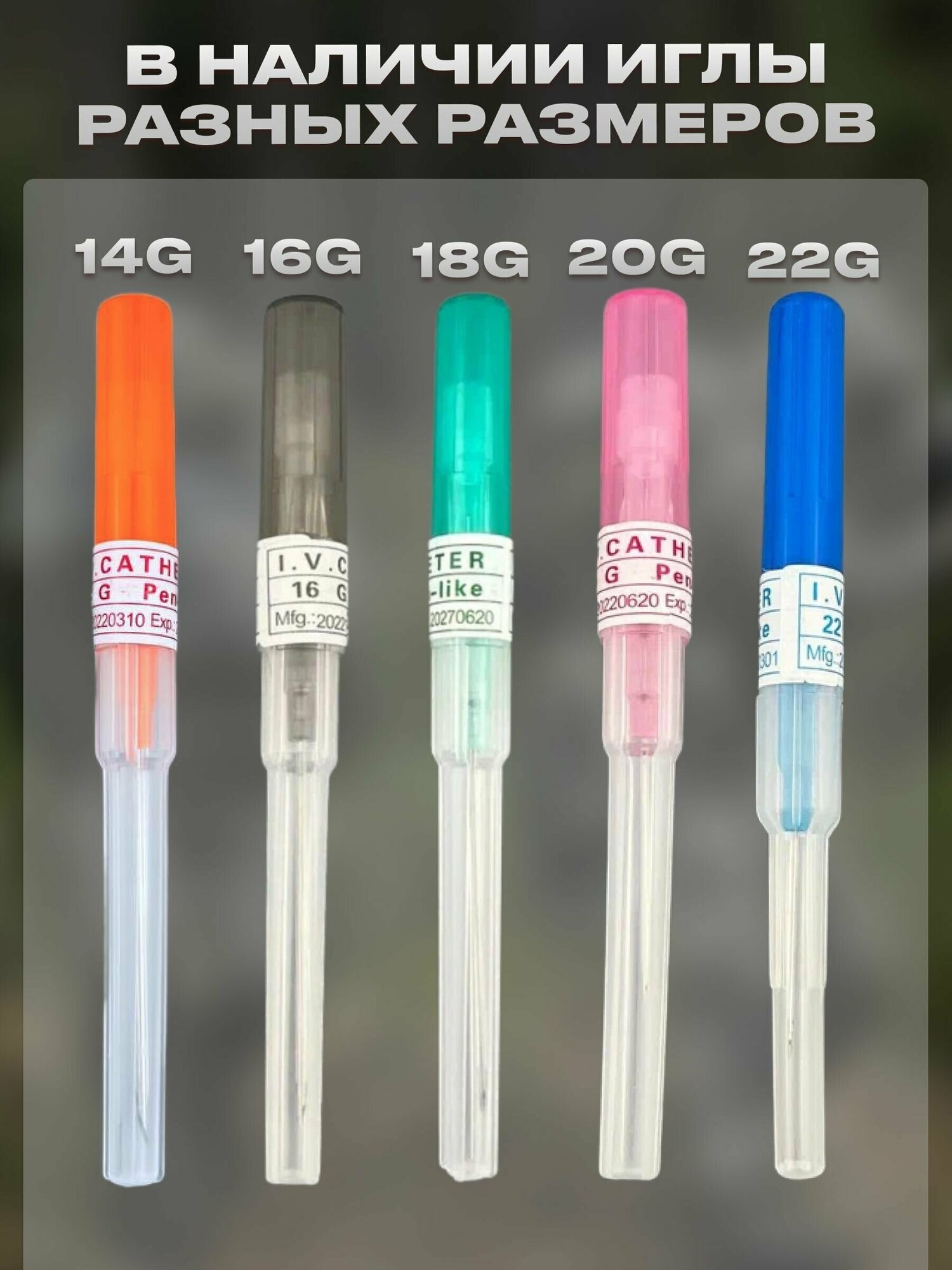 Тактическая инъекционная игла декомпрессионная синяя 24G 0.5 мм. (от пневмоторакса), катетеры модели бабочка - 5 шт симфония Н