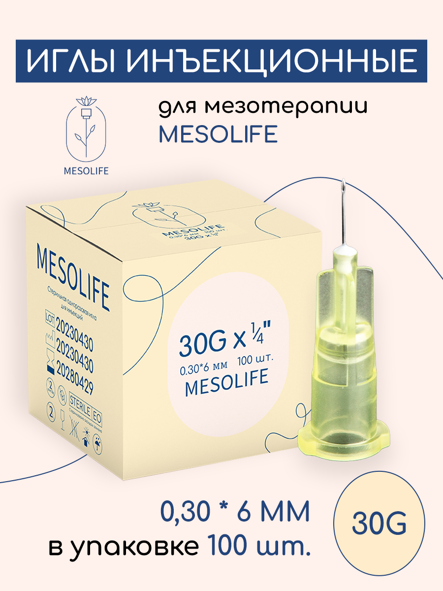 Иглы для мезотерапии 30G 0,3 х 25 мм, 100 шт, Mesolife